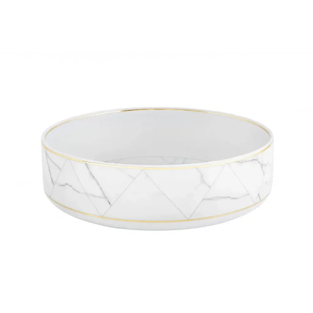 The combination between porcelain and drawings inspired by the noble marble of Carrara, a very refined, geometric approach, creates the illusion that each piece of the set is interchangeable. An unexpected collection created by French designer Coline le Corre. Vista Alegre is a world-renowned tabletop company and manufacturer of the largest collection of fine tableware, home decor, giftware, and hotelware in porcelain, crystal and glass in Europe. Known for its strong connection to design and culture and its tradition of working with world-renowned artists such as Christian Lacroix, Oscar de la Renta, and Karim Rashid, Vista Alegre offers a quality of excellence that appeals to a broad range of consumer tastes.