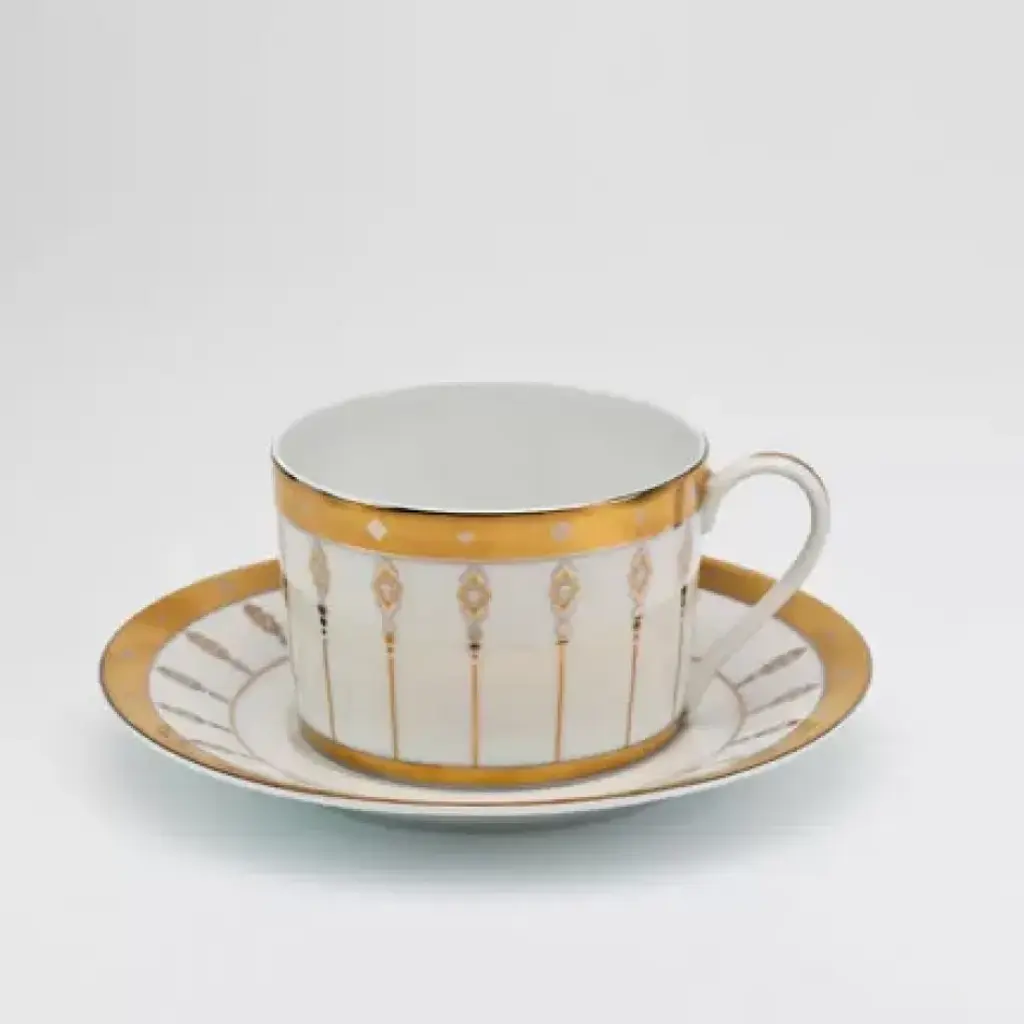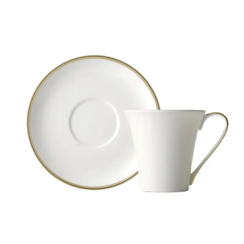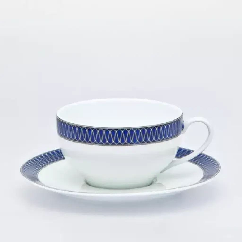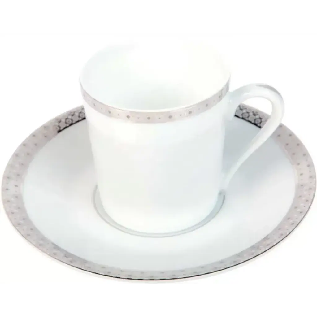Playful rhythms and lines adorn the rim of the Carrousel collection by Deshoulières. Lilting patterns in gray and platinum are inspired by musical notes. Five piece place setting includes dinner plate, dessert plate, bread & butter plate, teacup and saucer. Founded in 1826, Deshoulières is the leading French porcelain maker today. Their fine white Limoges porcelain is strong enough for everyday use. Their style is well known around the world. The painters and decorators have generations of knowledge. Inspired by trends from both interiors and fashion, their patterns are always refined. Deshoulières embodies a true spirit of French style. With their new collections, Deshoulières delights everyone from homeowners to professional chefs. Invite elegance to your table with Deshoulières.
