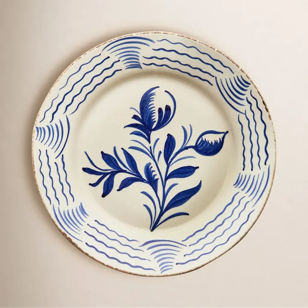 Casa Nuno Blue And White Dinner Plate, Pomegranate/waves, Set Of 2 (Set Of 2)