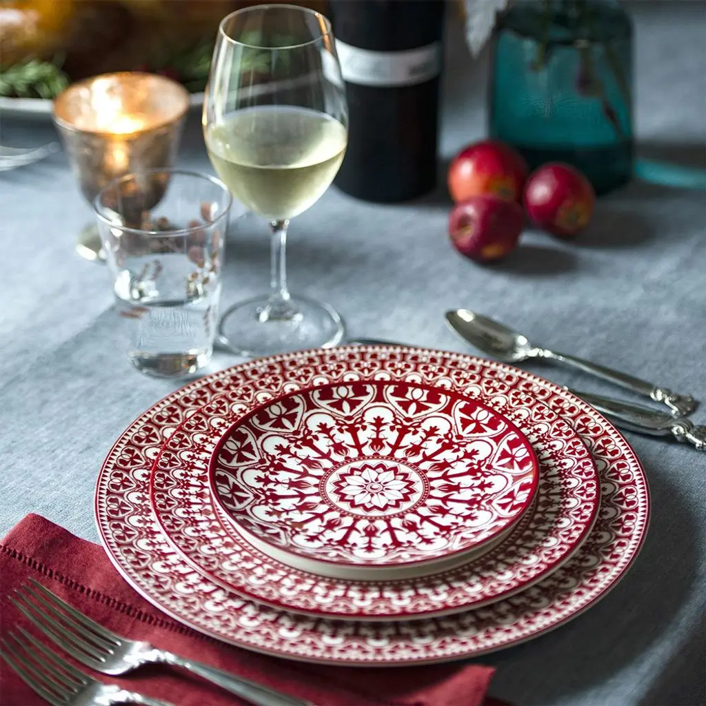 Casablanca Global Bazaar Crimson Porcelain Canape Plate - Set Of 4
