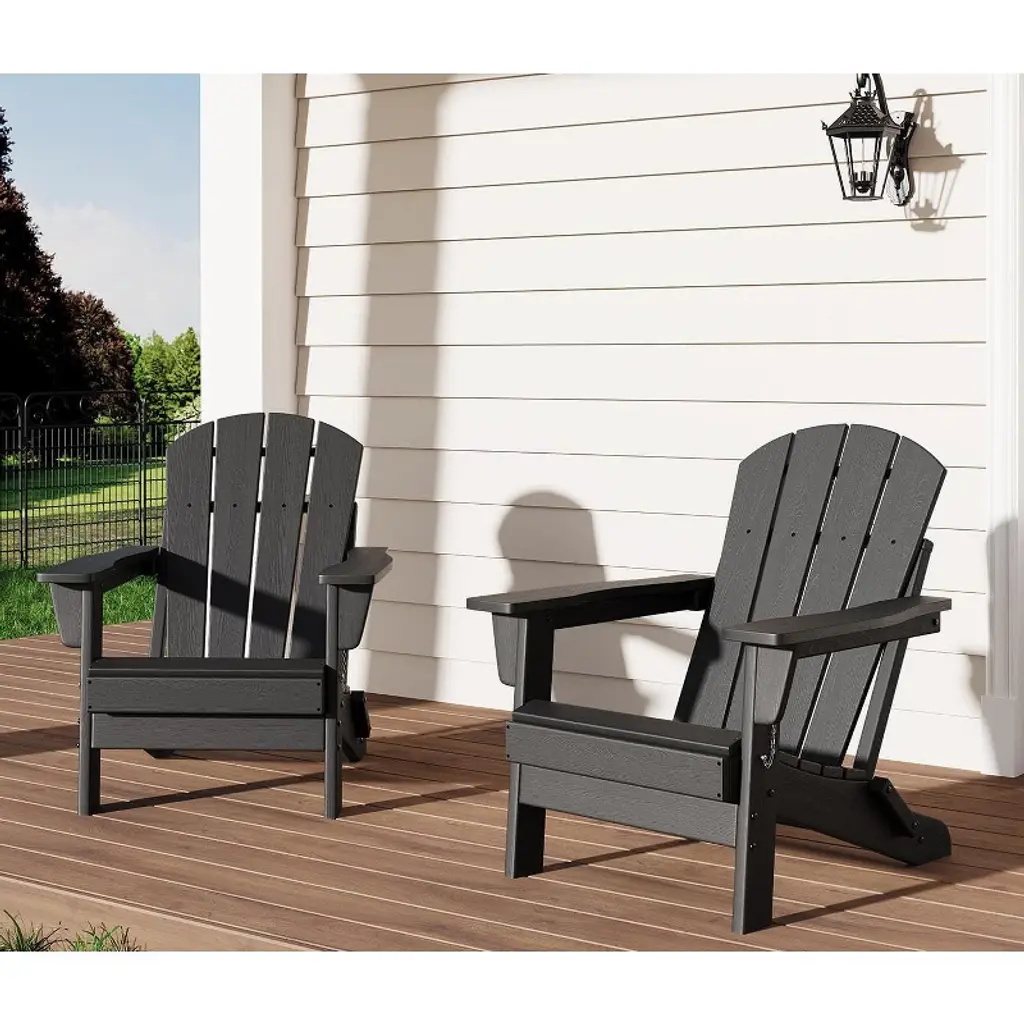 Casainc Adirondack Chair With Cup Holder And Umbrella Hole, Set Of 2, Gray