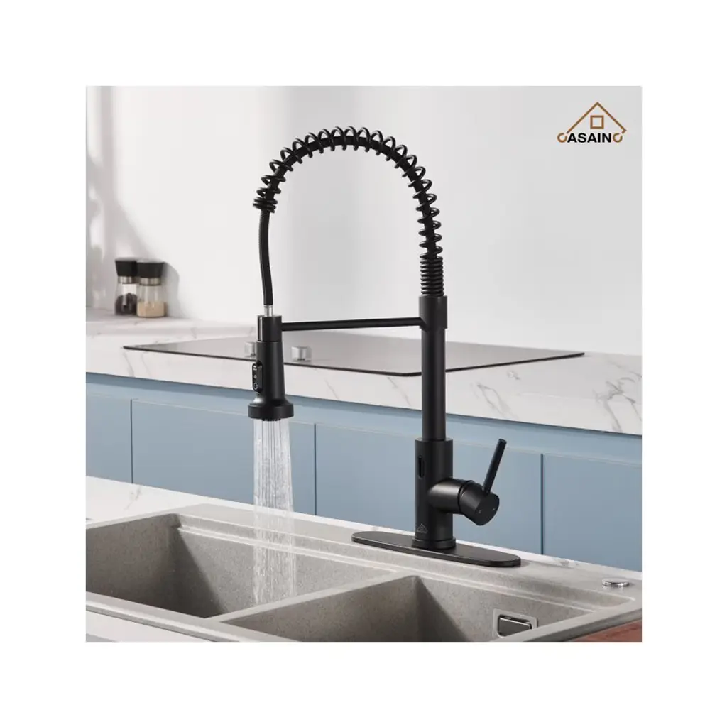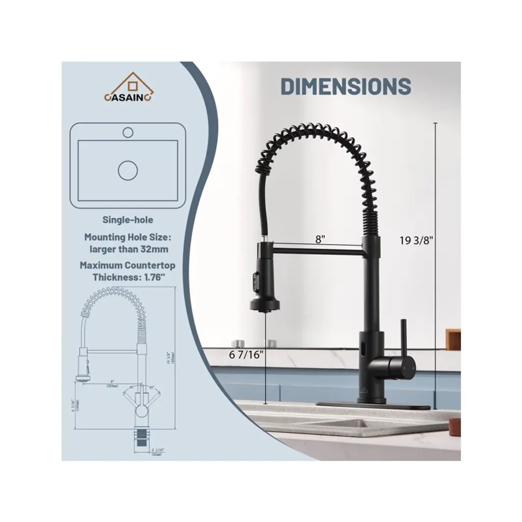 Elevate your kitchen with the CASAINC Touchless Pull-Down Kitchen Faucet, a seamless blend of modern luxury, hands-free technology, and high-performance engineering. Designed with both form and function in mind, this faucet offers the ultimate upgrade for homeowners who value convenience, cleanliness, and control. Crafted from premium stainless steel and engineered with an intelligent infrared motion sensor, this faucet allows you to turn water on and off with a simple wave of the hand — perfect for multitasking chefs or busy family kitchens. Whether you're washing produce, filling pots, or cleaning up, its three spray modes (stream, spray, blade) ensure precision for any task.