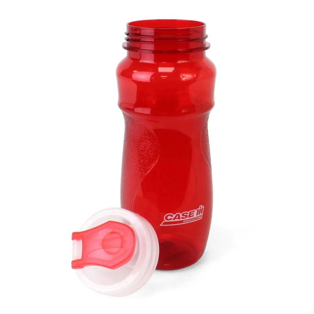 This is a Case IH 24oz Water Bottle. This red water bottle is BPA-free and features a contoured shape for easy holding, polyethylene plastic with textured grip, polypropylene lid with flip drink spout, and a wide mouth opening. It holds up to 24oz of liquid. Showcase your Case IH appreciation at any sporting event or outing with this 24oz water bottle!