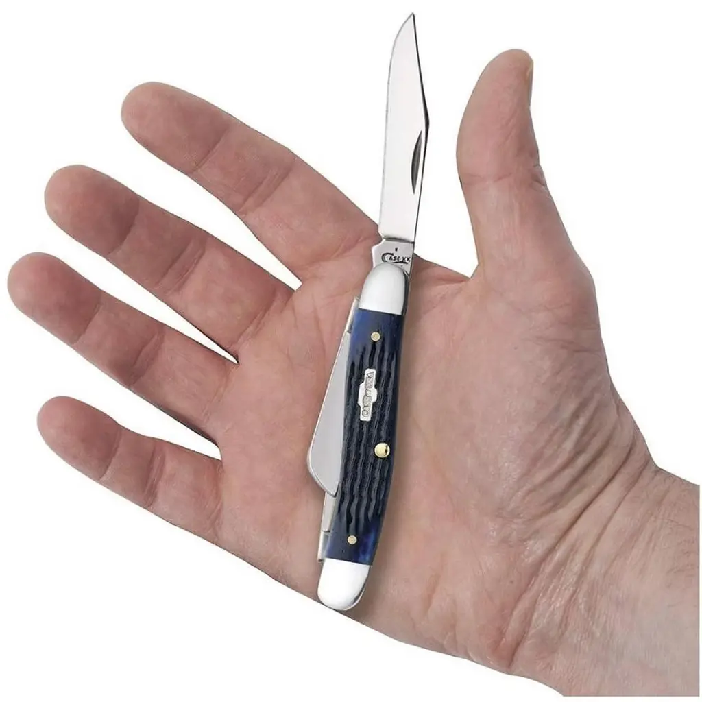 Case Xx Rogers Corn Cob Jig Blue Bone Medium Stockman Pocket Knife With Spey Blade