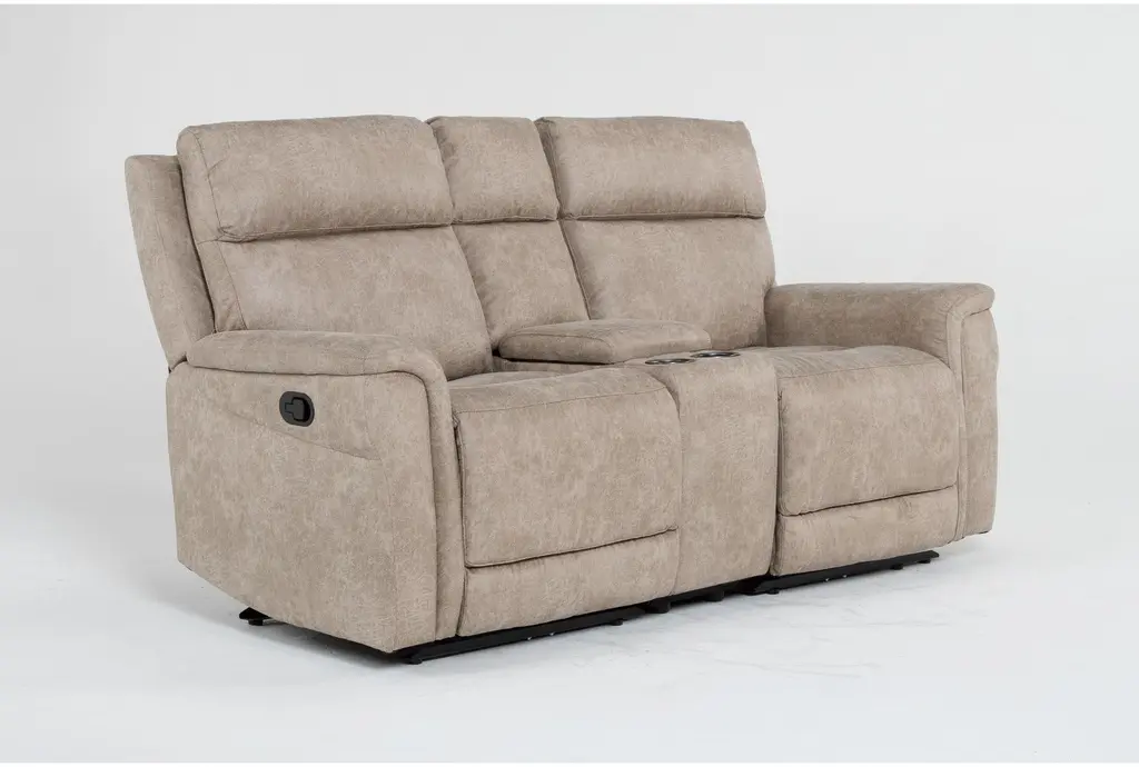 Enjoy a sense of ease and comfort with our Caspian manual reclining modular console loveseat, which is here to help you unwind. In addition to offering flexible modular design, reclining provides smooth motion for relaxation. Plush headrests and seat cushions featuring 2.0-density foam and Dacron deliver a combination of softness and support that will leave you feeling completely blissful. A console unit brings function and convenience with storage and cupholders. There's also USB for seamless charging.