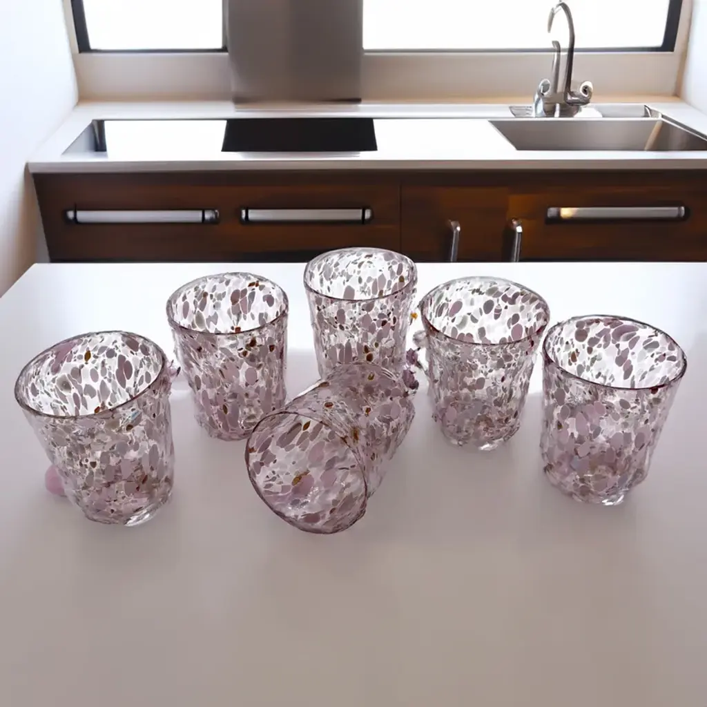 CASTELLO is a charming set of six drinking glasses entirely handmade by Murano glass artist. Cannot be missing on your table decor.Whether you have a classic home décor or a more modern one, whether you need colorful glasses to give a creative twist to your dining room or you are looking for a more sophisticated option to add an elegant touch to your dining table, you will certainly love our Murano glass tumblers, also known as “goti”. These precious Murano glasses are carefully handmade by expert glassmakers in the heart of the Venetian lagoon, they are unique collectible items to impress all your guests! All products are handcrafted and prime production quality. Insubstantial variations in shape, size, colour, small imperfections in the glass are not considered defects; they are inevitable and are typical of manual production of the glass and characterize handcrafted production.