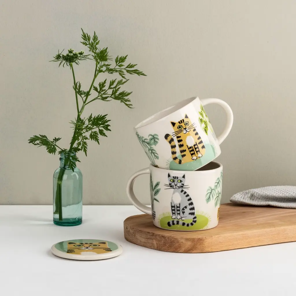 Hannah's new Cat collection has enormous feline appeal for adults and children alike, and now includes these wonderful mugs, featuring Hannah's stylish retro cat illustrations.Their comic graphic style creates a characterful gift with bags of charm. This mug is a great way to start your collection of Cat tableware, and comes in a beautiful gift box.Made from stoneware ceramic with a decal decoration.