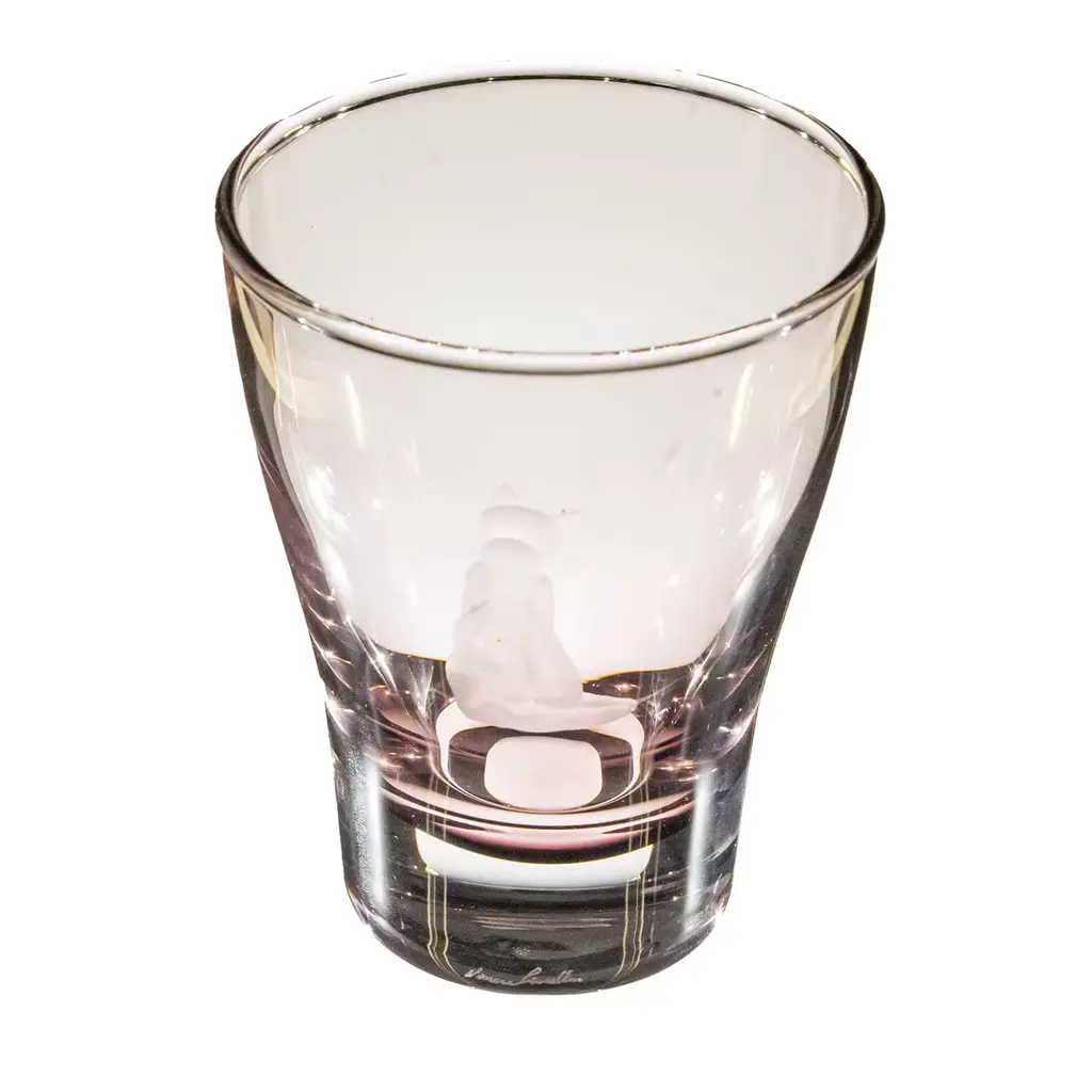 Depicting an agile cat mid-leap, the scrupulously etched decoration marking each of the six water glasses, making it a spot-on gift for cat owners. A simple shape progressively flaring towards the rim and a glamorous, soft purple hue further emphasize the beauty of the glass, which is here deftly mouth-blown by master artisans.