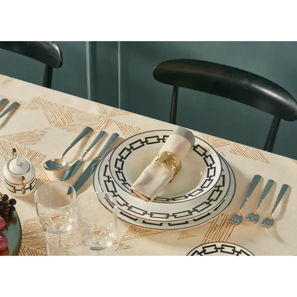 A very young Gio Ponti served as the artistic director of the Manifattura from 1923 to 1933, an incredible decade during which the legendary designer reimagined the art of working with porcelain by translating the legacy of artisan knowledge into new languages that remain contemporary even today. In 1926 many designs took shape out of his irrepressible creativity. Among these, a decoration made up of rectangular rings linked to one another. A chain, indeed. Sophisticated and elegant in its essentiality, but also explosive and disruptive in its geometric movement. A single design, a hint of color that links the porcelain plates, cups and serving platters in the collection, available in four color variants: black, scarlet, emerald and sapphire.