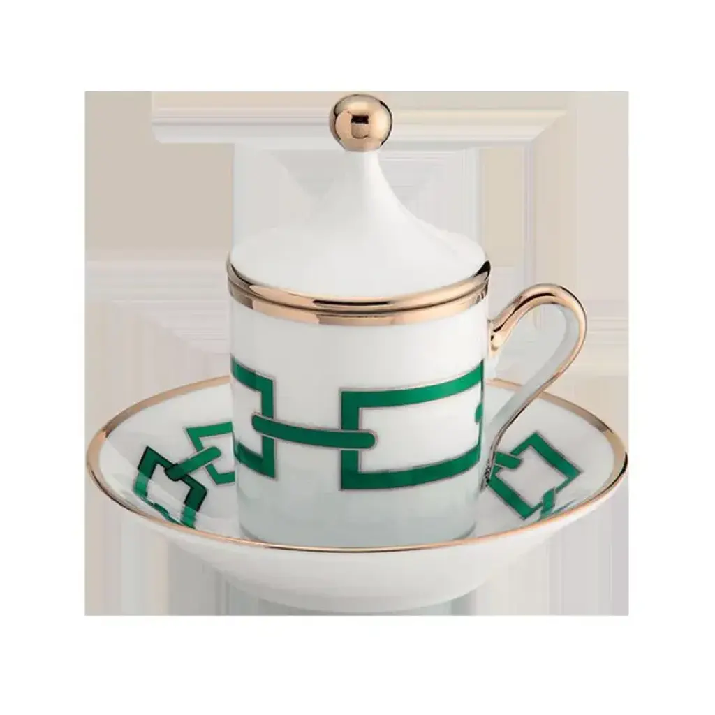 Catene Smeraldo Tete A Tete Coffee Set, 2 Coffee Cups With Covers And Saucer