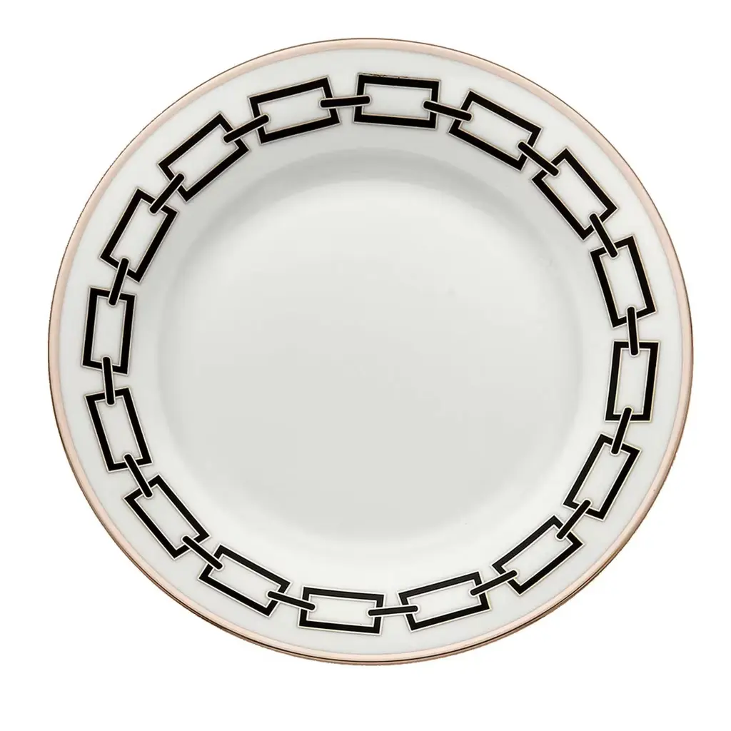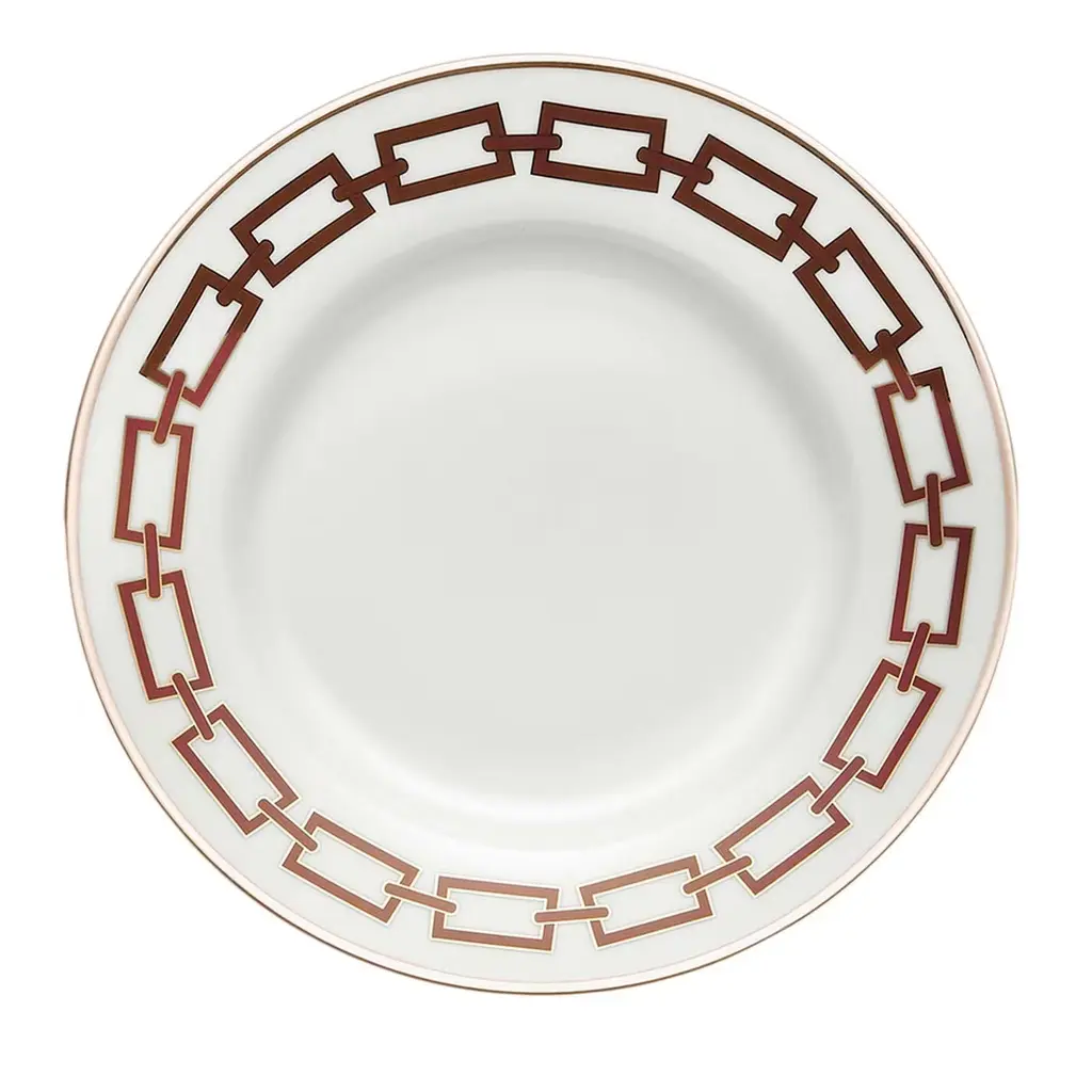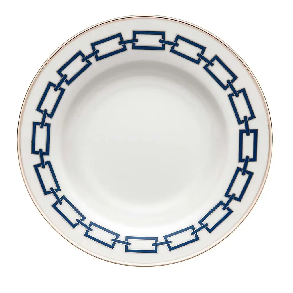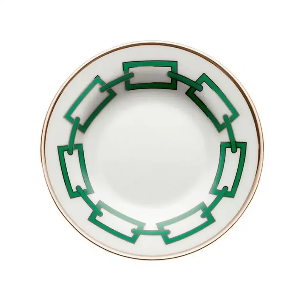 A very young Gio Ponti served as the artistic director of the Manifattura from 1923 to 1933, an incredible decade during which the legendary designer reimagined the art of working with porcelain by translating the legacy of artisan knowledge into new languages that remain contemporary even today. In 1926 many designs took shape out of his irrepressible creativity. Among these, a decoration made up of rectangular rings linked to one another. A chain, indeed. Sophisticated and elegant in its essentiality, but also explosive and disruptive in its geometric movement. A single design, a hint of color that links the porcelain plates, cups and serving platters in the collection, available in four color variants: black, scarlet, emerald and sapphire.