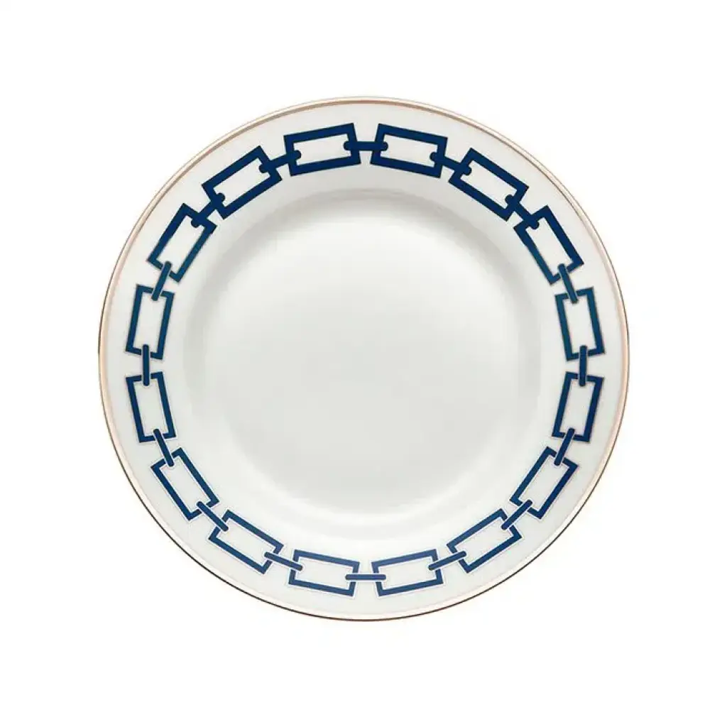 A very young Gio Ponti served as the artistic director of the Manifattura from 1923 to 1933, an incredible decade during which the legendary designer reimagined the art of working with porcelain by translating the legacy of artisan knowledge into new languages that remain contemporary even today. In 1926 many designs took shape out of his irrepressible creativity. Among these, a decoration made up of rectangular rings linked to one another. A chain, indeed. Sophisticated and elegant in its essentiality, but also explosive and disruptive in its geometric movement. A single design, a hint of color that links the porcelain plates, cups and serving platters in the collection, available in four color variants: black, scarlet, emerald and sapphire.