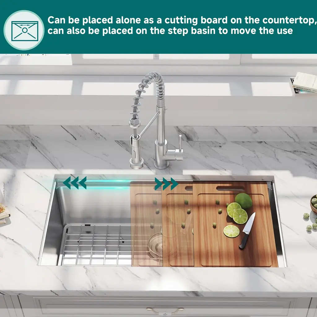 Upgraded your kitchen sink with CB HOME Kitchen Sink Bottom Grid, Cutting board, Colander, Roll up Dish Drying Rack, Workstation Kitchen Sink Accessories.This multifunction set of kitchen sink accessories is made of high-quality materials, have advantage of long-lasting, functional, can greatly improve the usability of the kitchen sink, improve your kitchen living standards. You can buy the whole package or buy it individually, so you can choose from a variety of combinations. CB HOME COLLECTION has always been loved by customers because of the combination of beauty and functionality, come and upgrade your kitchen accessories!!---------All Accessories Suit For 32'X19'' Single/Double Sink or Workstation Sink---------Features:【Kitchen Sink Bottom Grid】:Constructed from premium T304 stainless steel, this bottom grid protects your sink against damage from daily use and improves draining by keeping dishes elevated. Removable kitchen sink drain basket makes cleaning easier.【Cutting Board】: The cutting board is constructed of solid hardwood, not easy to crack, warp and deform, It can maintain the original shape better. It can be used in workstation sinks to maximise the use of space.【Colander】:This colander made of T304 stainless steel, it can be used to wash fruits, vegetables or other foods. Dry your washed fruits and vegetables and drain easily without staining your kitchen countertop.【Roll up Dish Drying Rack】: Roll-up Drying Rack is constructed of stainless steel bars and silicone frame. Flexible foldable dish drying rack is convenient for you to roll up and storage. After cleaning some cups or dishes, you can place them on it to dry. In addition to being used on the sink, you can also use it as a heat insulation mat on the countertop, which is very practical.【Suitable for Kitchen Sink】:You can use it on your kitchen sink, suitable for drop in sink, undermount sink and workstation sink,more convenient and simplify your kitchen duties.