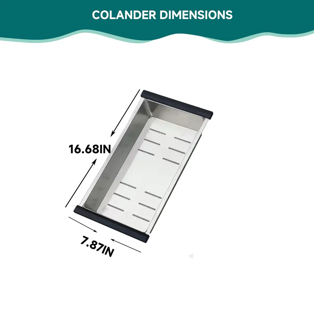 Cb Home Sink Protector For Kitchen Sink, Cutting Board, Colander, Roll Up Dish Drying Rack, Workstation Kitchen Sink Accessories - 16.68"x7.87" - Colander