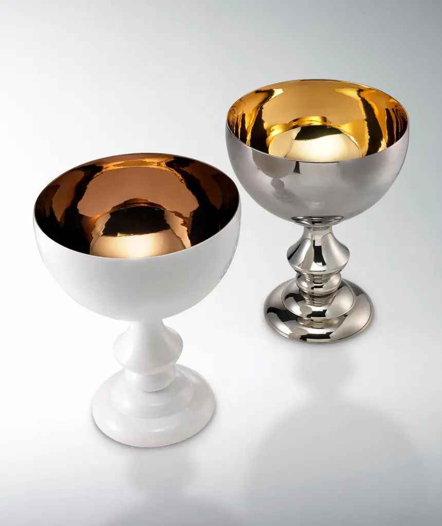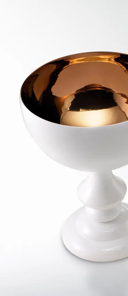 Ceramic Cup MIDA white outside, handcrafted bronze insidecod. CP002Measures: H. 70.0 cm.D. 55.0 cm.