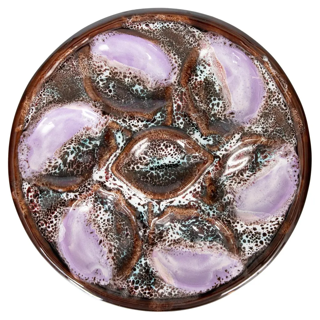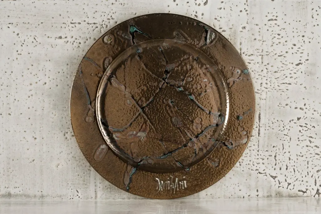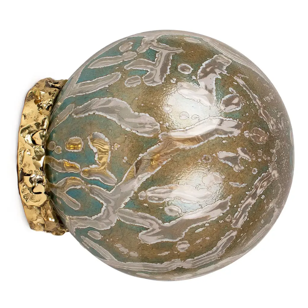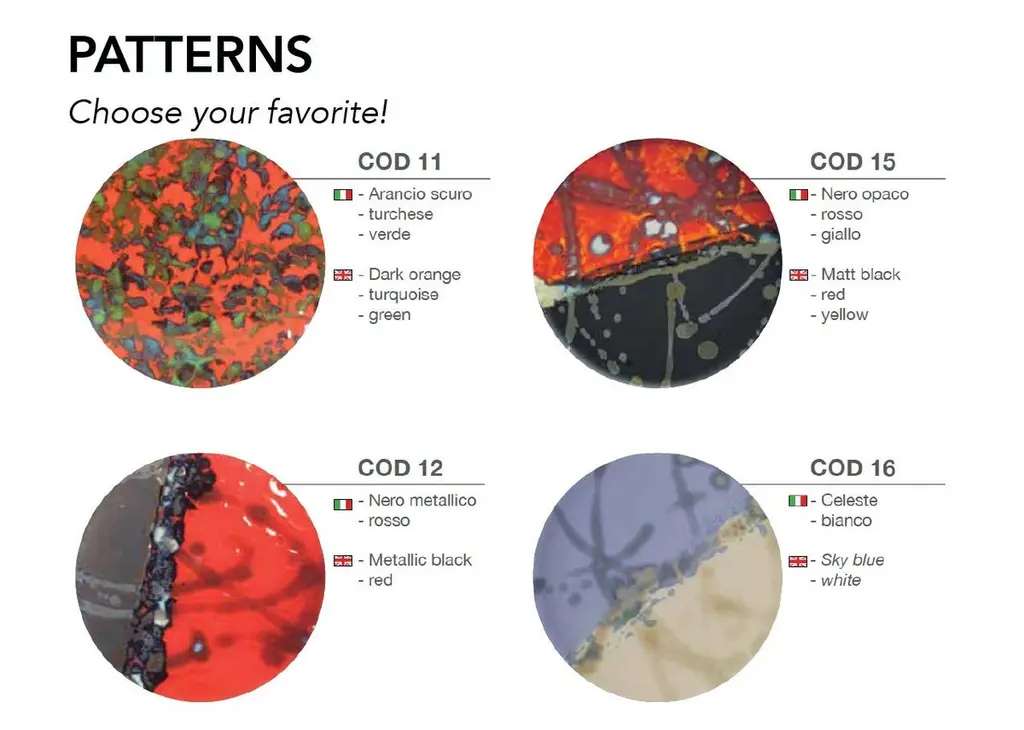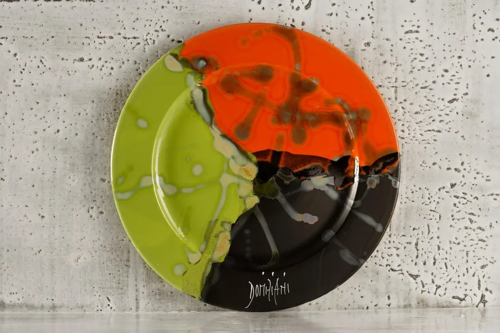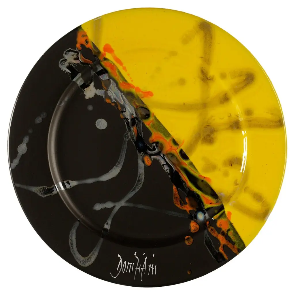 For more than 30 years this artist has revolutionized the way of thinking about stone. Their artisan techniques are the result of careful research and deep knowledge of the subject: they involve the meticulous artistic work of those who know how to see beyond, transforming the unexpected into a formula of uniqueness. The eclectic and resistant combinations in lava and volcanic stone are the effect of processes that change the shape of the material through the idea, fixed and tempered in an oven that forges its identity. Size Ø 27 cm.The incredible characteristics of volcanic stone and lava rock make them perfect materials for projects with high customization capacity: beautiful even in its natural form, the stone is coated with different glazes and hand-painted decorations for unique pieces of every color, size and shape. With its extraordinary resistance, the table tops can live both indoors and outdoors.Volcanic stone (mined underground) is used for the Classic tops (SUN), while Lava Rock (above ground) is used for the Design tops (COD). Lava rock is denser and harder than volcanic stone and it also bakes dark charcoal and does not require a white glaze base coat prior to adding the ceramic glaze. This allows the artist much greater flexibility and freedom as the organic color of the rock does not influence the designs.The term Majolica lava stone commonly indicates a lava basalt object that has a majolica surface decoration. In reality, since ceramics rather means a large grouping of terracotta artifacts, this decorative technique in the specialist field is more correctly referred to as Majolica lava stone or Majolica on lava stone. Thanks to the particular aesthetic potential due to ceramics, combined with the remarkable mechanical and physical resistance of basalt, ceramic-coated lava stone is used for the production of tables, tops for kitchens and bathrooms, floors, mosaics, shower trays, sinks and coverings.The process of working stone and volcanic lava is divided into several phases, all carried out by hand in the studio: cutting, glazing, hand decoration, vitrification and double firing at over 1000 degrees. All this makes the material suitable for any indoor and outdoor environment, as it does not undergo any variation if exposed to snow, rain, sunlight or salt. Furthermore, it has excellent characteristics of impact resistance, does not absorb any type of substance, does not stain, does not alter in contact with heat sources such as embers, hot pots or acid solutions and has a degree of resistance to scratching higher than marble.The artist's workmanship is an expression of the great technical and custom ability of its craftsmen, who elaborate complex shapes and combinations to create objects with a strong, fluid and harmonious identity like the hand of nature. The ability to investigate the stone and its facets allows you to work objects whose appearance you can only imagine: present and future alternate in the eyes of the craftsman, until the moment of firing, which consecrates the piece in its indestructible final form.