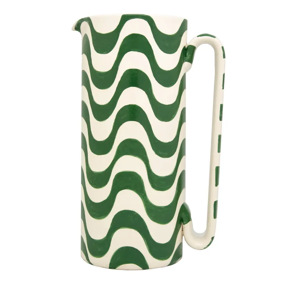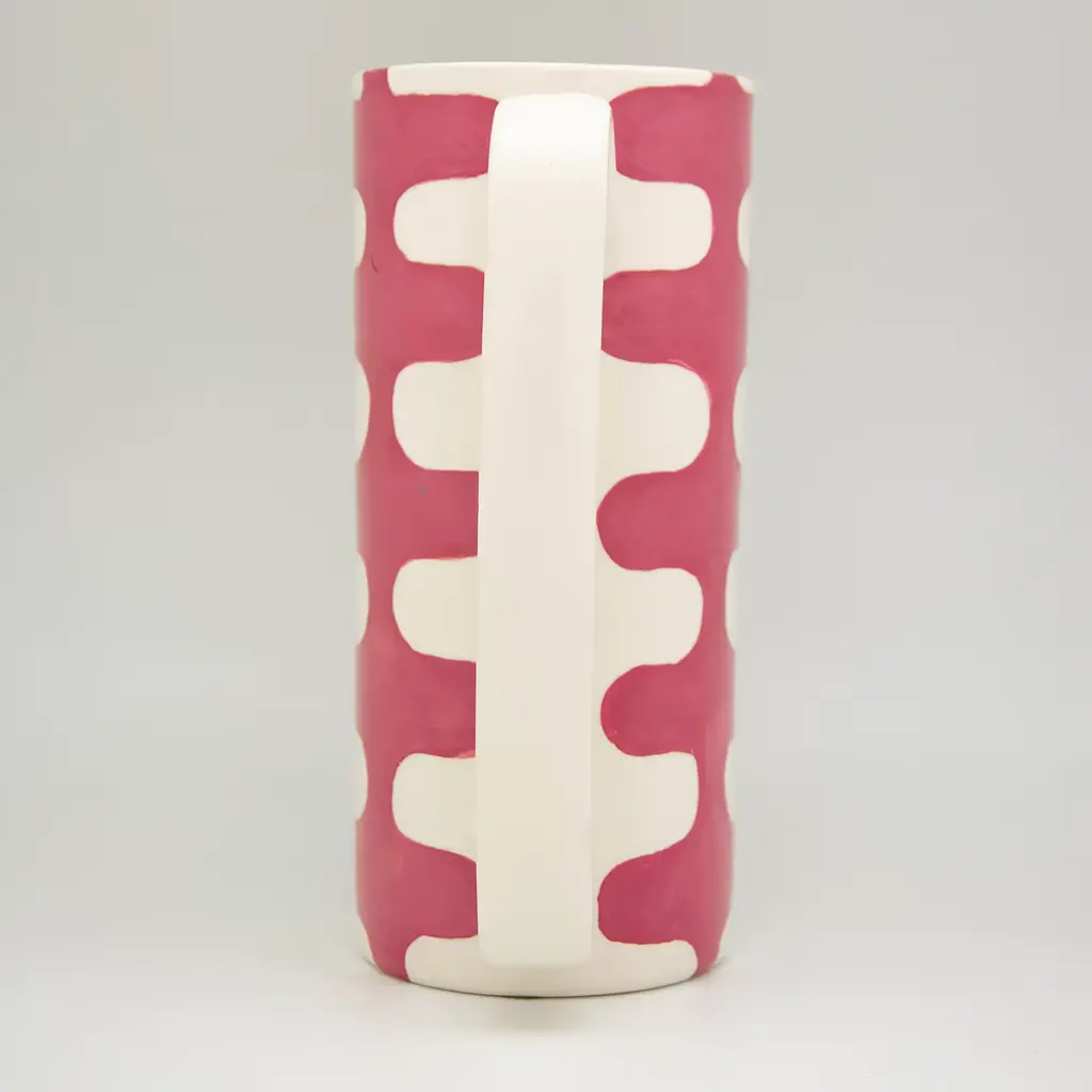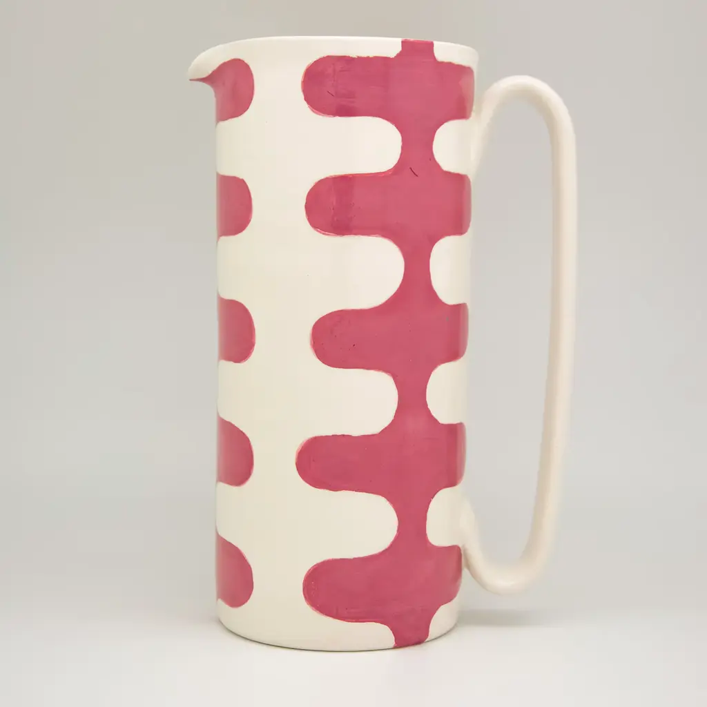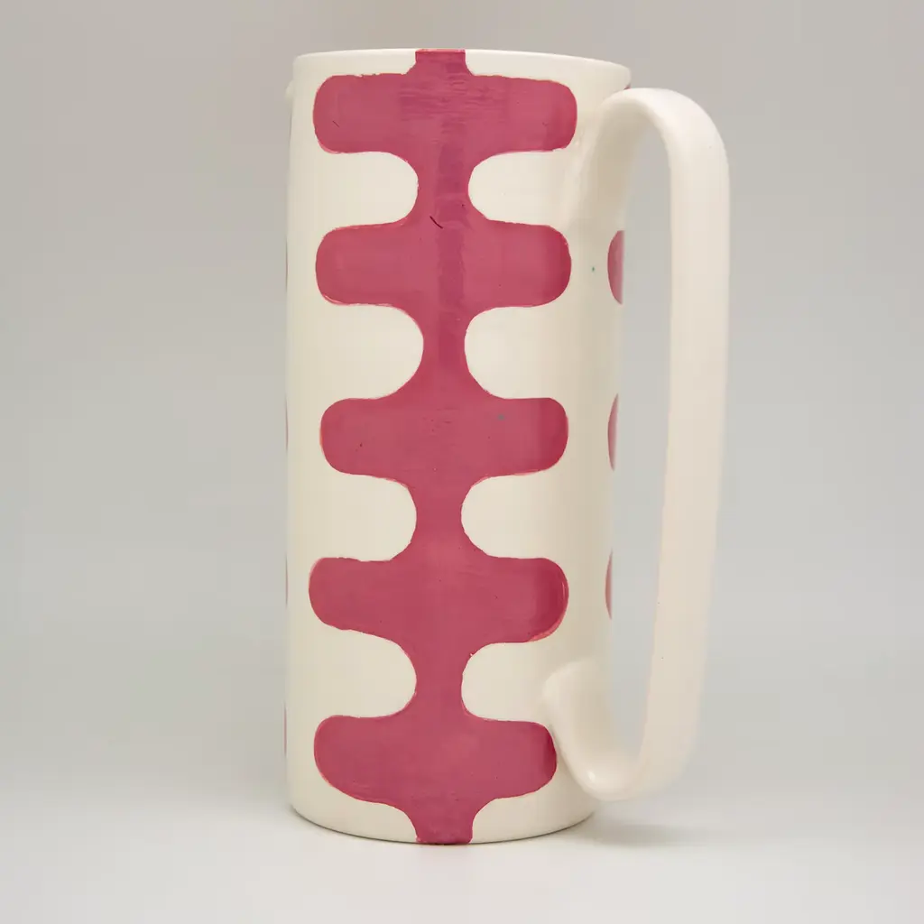 Inspired by the sidewalks of Rio de Janeiro beaches, the Serlio 'pattern' collection evokes the artist's emotional connection with Brazil. A unique ceramic carafe fully hand-painted where the pattern wraps around the entire vase finished with a matt glaze that highlights the artisanal details. Bring some tropical joy to any table.