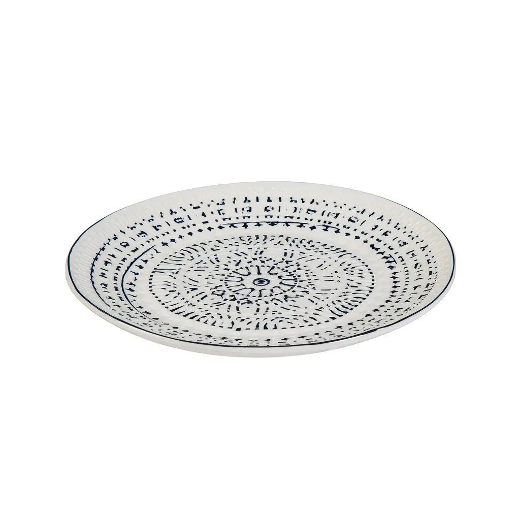 Awash in a deep blue and pure white color palette, this plate from our stunning Inkwell collection takes stoneware to new heights. A vibrant design covers the debossed piece, adding inspired dimension and an understated elegance that will bring fresh flair to the table at any event, whether it's an al fresco party or small get-together.Crafted from heat-resistant ceramic, the plate is a timeless staple that is ideal for entertaining or everyday use. It is microwave and top-rack dishwasher safe.