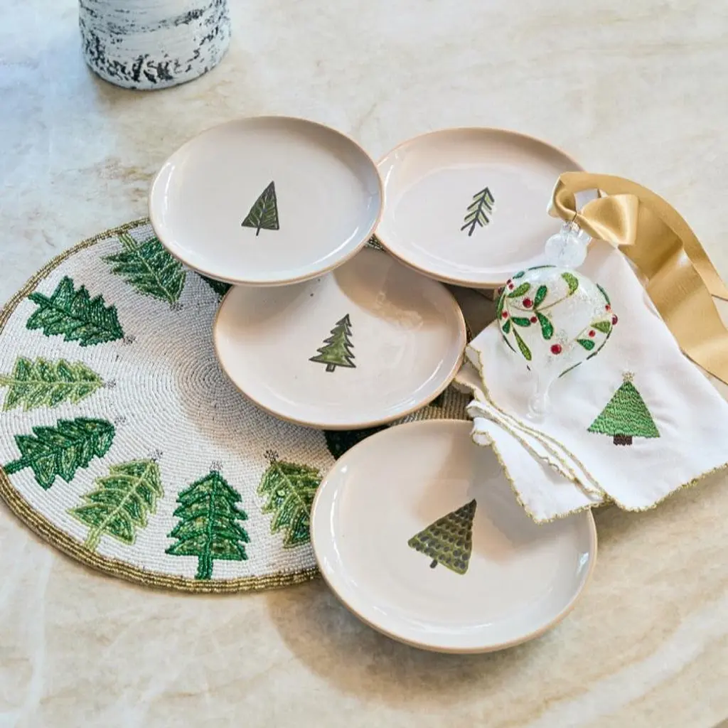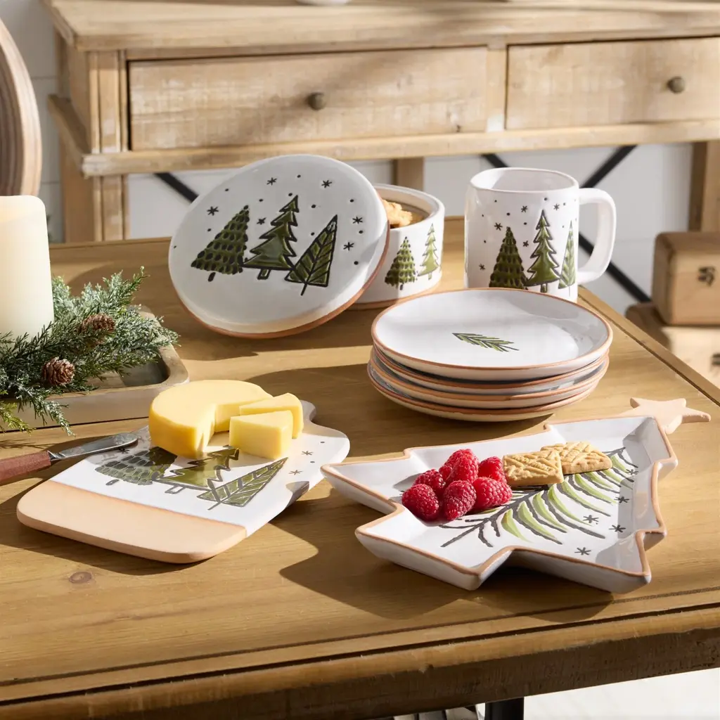 Get your kitchen ready for the holiday season with this stunning Ceramic Pine Tree Plates. Featuring four pieces, this piece is a great fit for your rustic woodland or cabin style of décor. The forest green tones paired with the modern yet rustic pine tree design and unglazed ceramic accents are the perfect combination to create a memorable display. The quality ceramic composition is sure to endure for seasons to come. Use these plates as serveware for your holiday get-togethers, or gift them to a nature-loving friend to spread the cheer.