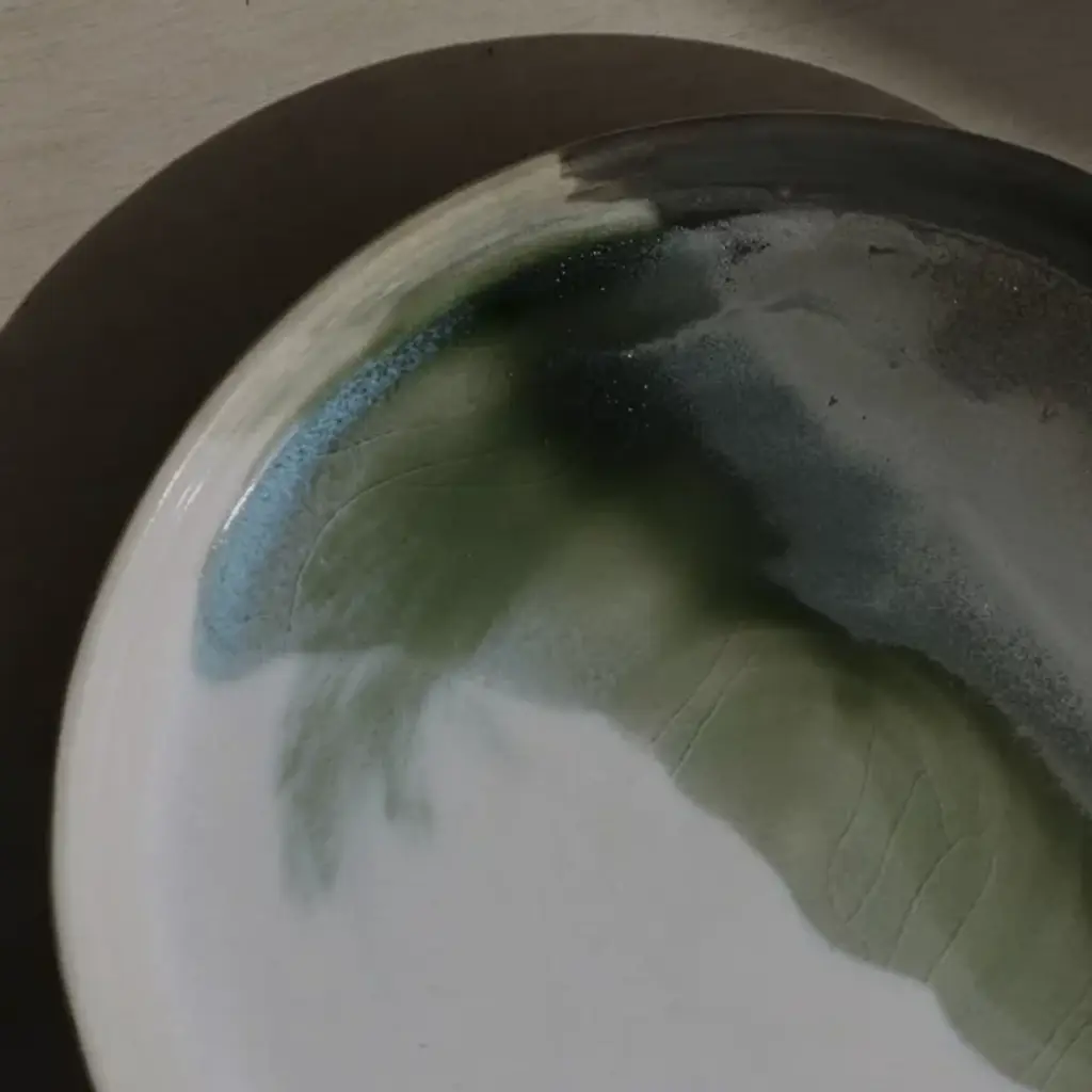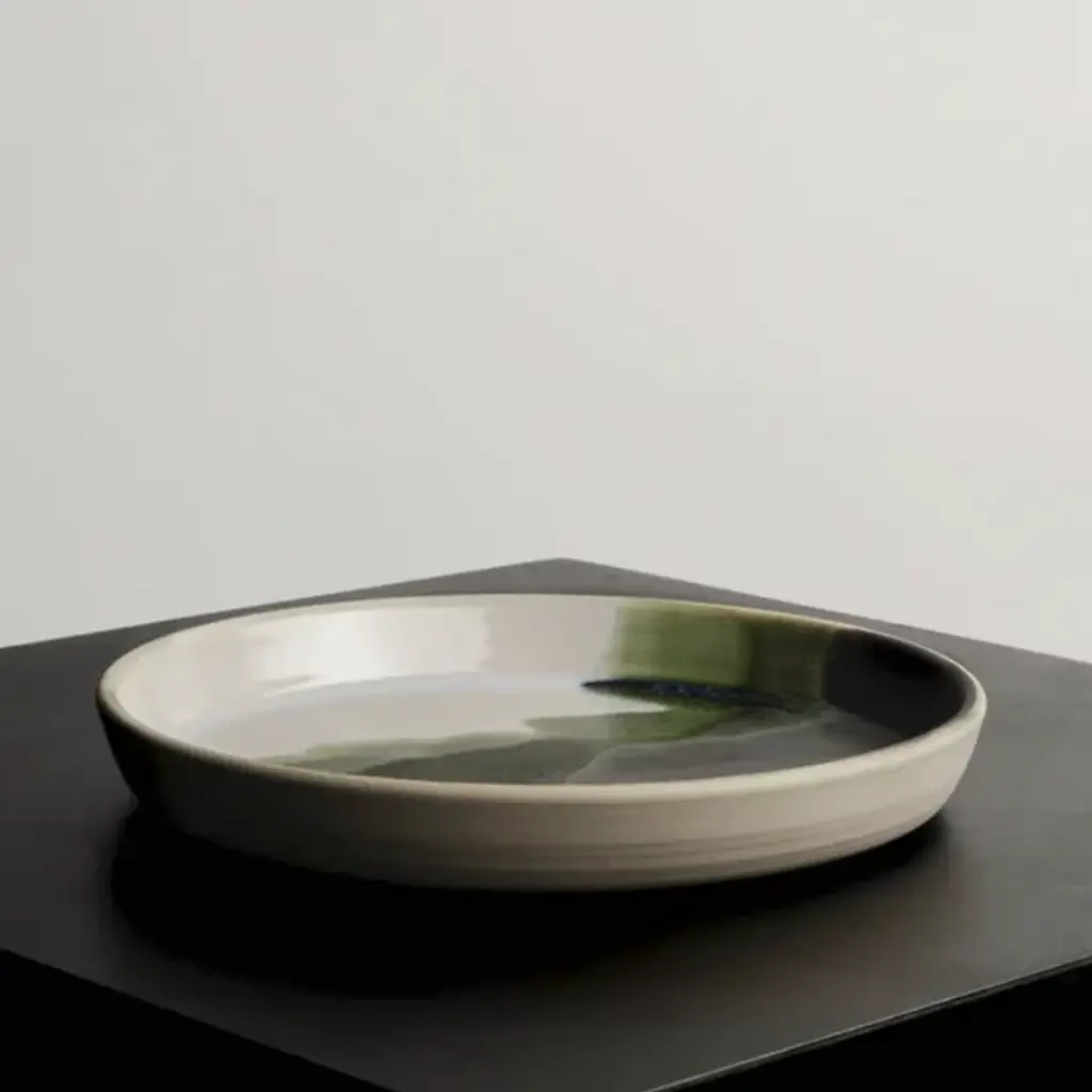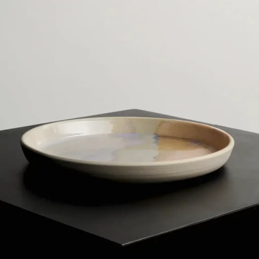 The Ceramic Plate from OWIU Goods features a wide, flat surface elegantly contrasted by a tall rim, blending minimalist design with functionality. Crafted in the United States from locally sourced clay and finished with a food-safe glaze, this plate is perfect for both everyday meals and special occasions, adding a touch of refined simplicity to your table.