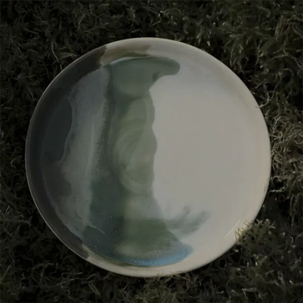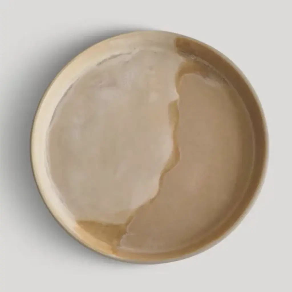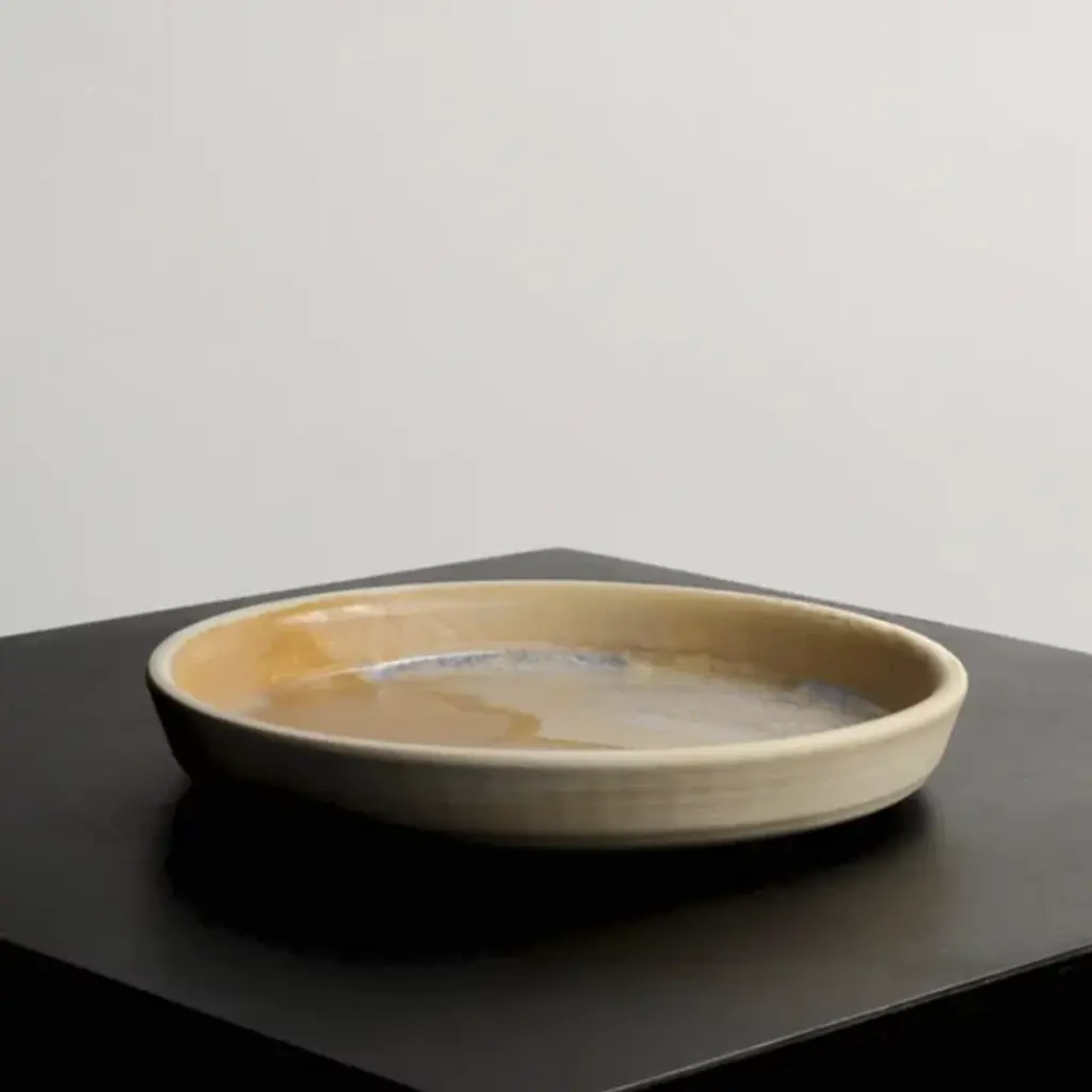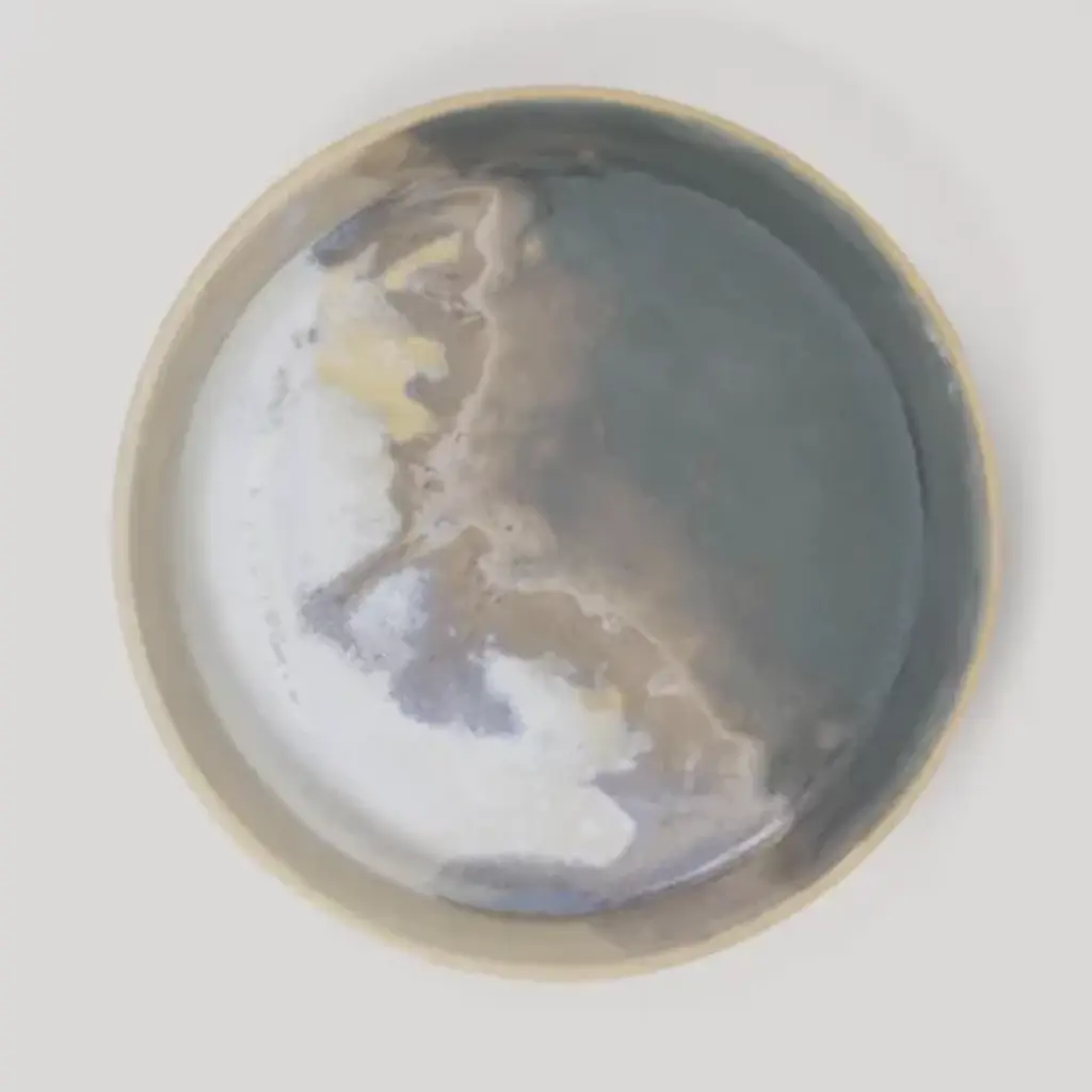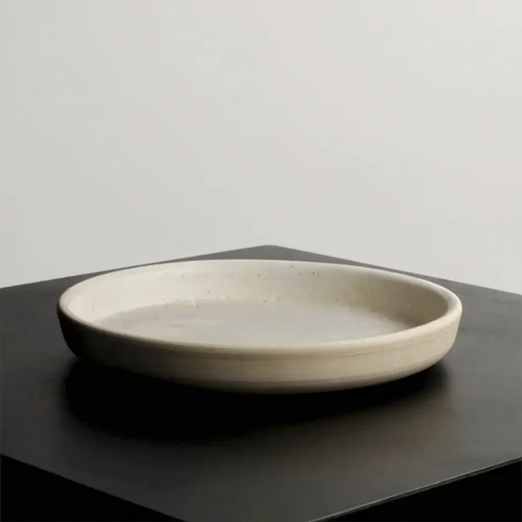 The Ceramic Plate from OWIU Goods features a wide, flat surface elegantly contrasted by a tall rim, blending minimalist design with functionality. Crafted in the United States from locally sourced clay and finished with a food-safe glaze, this plate is perfect for both everyday meals and special occasions, adding a touch of refined simplicity to your table.