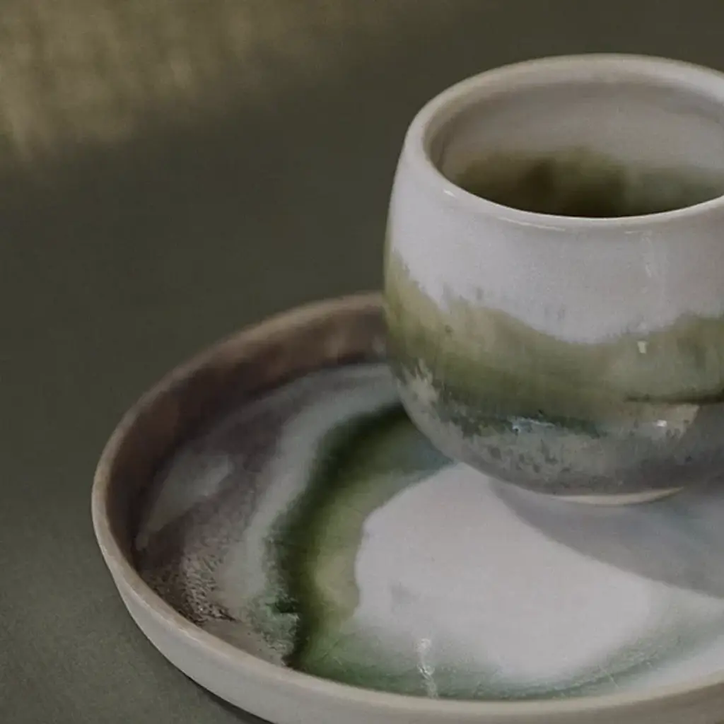 The Ceramic Plate from OWIU Goods features a wide, flat surface elegantly contrasted by a tall rim, blending minimalist design with functionality. Crafted in the United States from locally sourced clay and finished with a food-safe glaze, this plate is perfect for both everyday meals and special occasions, adding a touch of refined simplicity to your table.
