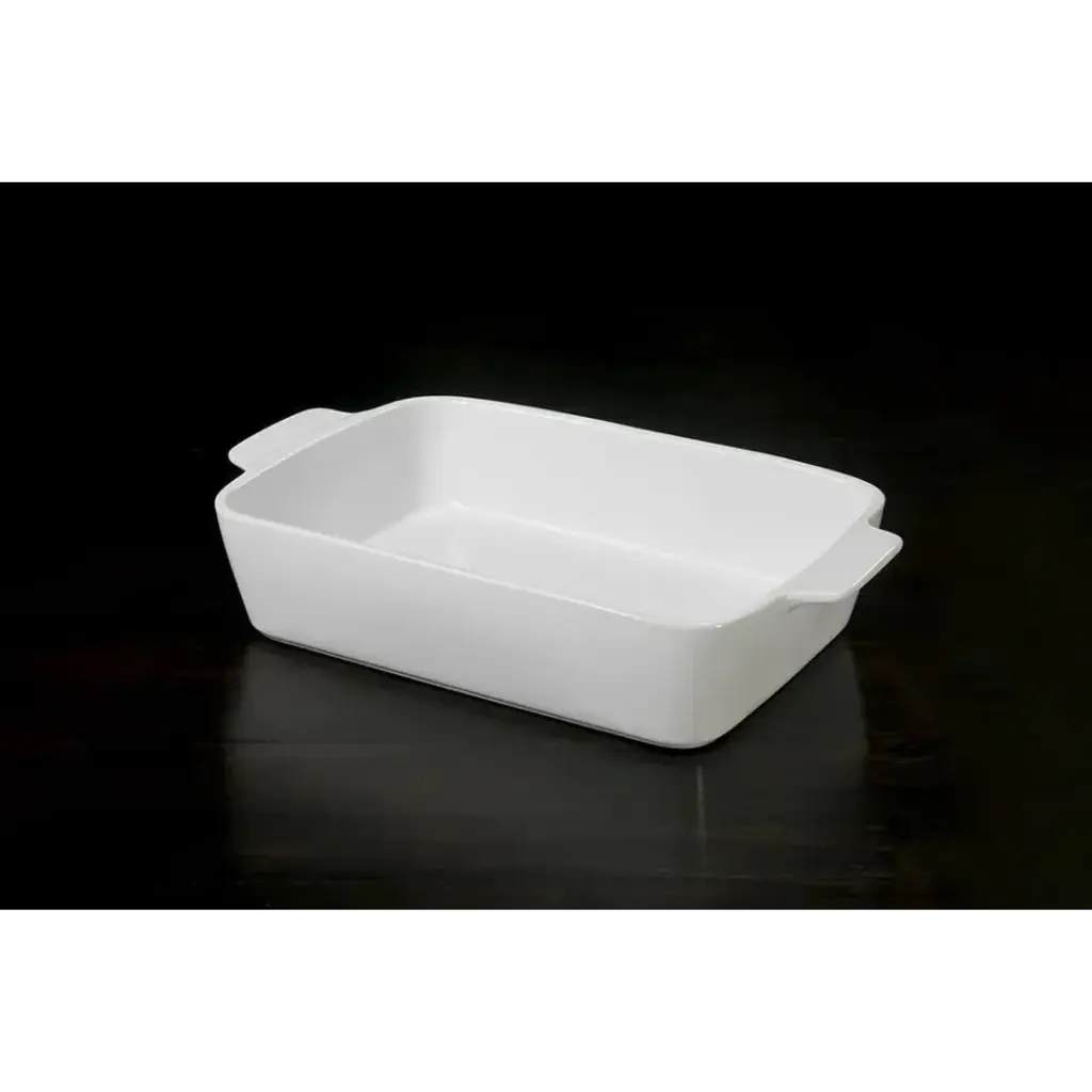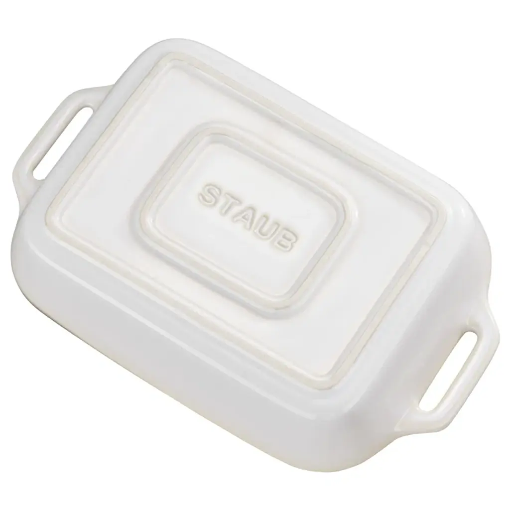 The elegance and functionality of this Rectangular Ceramic Baking Dish go from freezer to oven to table. The glass porcelain finish matches Staub's cast iron to mix perfectly on your tabletop. Oven and broiler safe up to 572˚F, ceramics can also be used in the microwave and are dishwasher safe. Highly scratch, impact, and thermal shock resistant.