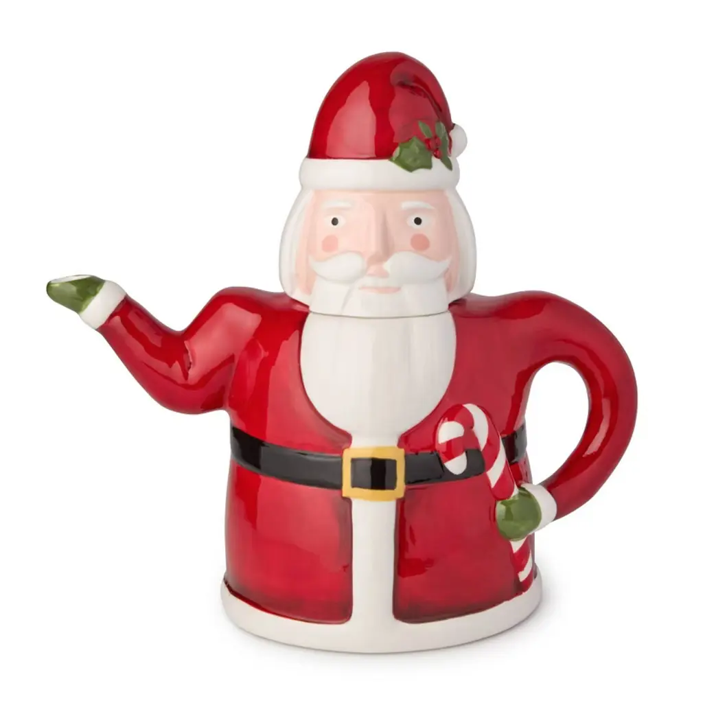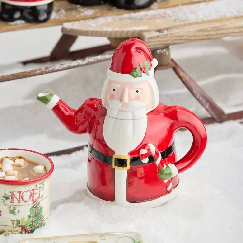 Celebrate the holidays in whimsical style with our Nutcracker Parade 3D Santa Teapot. This ceramic teapot features a charming sculpted Santa holding a candy cane, hand-painted in festive reds, greens, and golds. With a 28oz capacity, it’s perfect for sharing your favorite seasonal teas or warm drinks. A joyful centerpiece for any holiday table or tea service, it pairs beautifully with the matching Nutcracker Parade mugs and plates. Designed to bring charm and nostalgia to every pour, this teapot is a must-have for collectors and holiday hosts alike. Whether used to serve guests or simply to decorate your kitchen counter, it brings heartwarming spirit and timeless holiday magic into your home.
