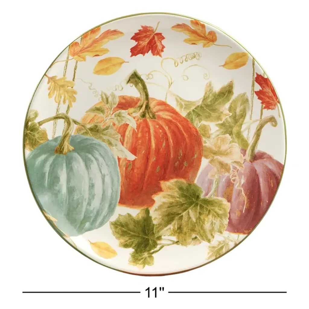Welcome the arrival of fall with Certified International’s Autumn Harvest Set of 4 Dinner Plates designed by the artist Danhui Nai. Colorful pumpkins and autumn leaves abound in rich fall shades on each ceramic 11” Dinner Plate. Coordinating desserts, mugs, bowls and serve ware is available to complete the look of autumn in your home.