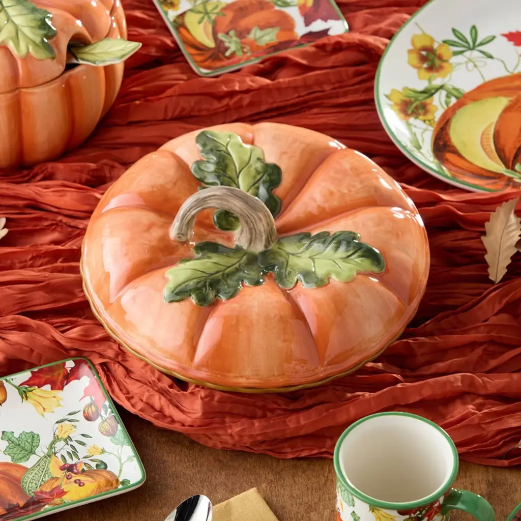 Celebrate the beauty of autumn with the Harvest Fields Set of 4 Dinner Plates, featuring a stunning harvest-inspired design with pumpkins, berries, and rich botanical accents. These 11-inch ceramic plates bring a cozy, rustic charm to your dining table, making them perfect for fall gatherings, Thanksgiving feasts, and everyday farmhouse-style dining. The smooth glazed finish enhances durability, while the generous size is ideal for serving hearty meals, holiday spreads, and seasonal favorites. Whether you're hosting a festive dinner or enjoying a casual meal, these plates add warmth and elegance to any occasion. Microwave and dishwasher safe, they offer both style and convenience, making them a must-have for fall table settings.