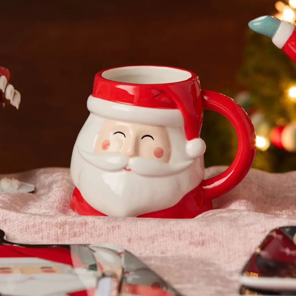 Celebrate the season with the Christmas Whimsy Santa 3D Mugs—a festive set of four ceramic mugs designed to warm hearts and hands. Each 17 oz mug features a sculpted Santa face bursting with personality, rosy cheeks, and hand-painted detail that brings holiday joy to life. These mugs are perfect for sipping cocoa by the fire, enjoying morning coffee, or setting up a themed hot beverage bar at your next gathering. With their bold red hats, classic expressions, and glossy finish, they’re as fun to display as they are to drink from. Whether part of your seasonal décor or a thoughtful holiday gift, they’re a cheerful way to brighten every sip. Crafted from high-quality ceramic and dishwasher safe, they’re both beautiful and practical. Pair them with other items from the Christmas Whimsy collection to create a magical and coordinated tabletop experience filled with warmth, laughter, and holiday cheer.