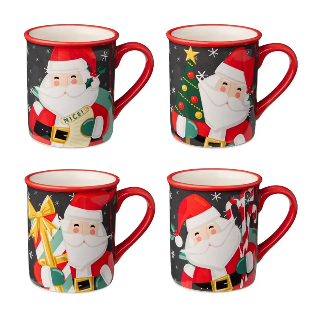 Certified International (Set Of 4) 17oz Christmas Whimsy Santa 3D Mugs