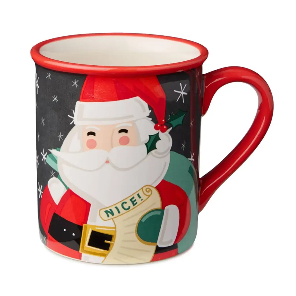 Start each holiday morning with the cheerful charm of our Christmas Whimsy Santa Set of 4 Mugs. Crafted from ceramic with an 18oz capacity, these mugs feature four different scenes of Santa—decorating a tree, carrying gifts, holding candy canes, and reading the 'Nice List'—all set against a bold black background with festive red rims and handles. Whether you’re sipping hot cocoa, coffee, or mulled cider, these mugs bring warmth and joy to your winter beverage routine. Microwave and dishwasher safe, they offer convenience for busy mornings and holiday entertaining alike. Pair with matching dessert plates or present as a thoughtful gift for friends, coworkers, or family. This cheerful set is the perfect blend of functionality, festive spirit, and timeless charm.