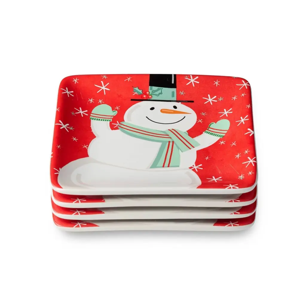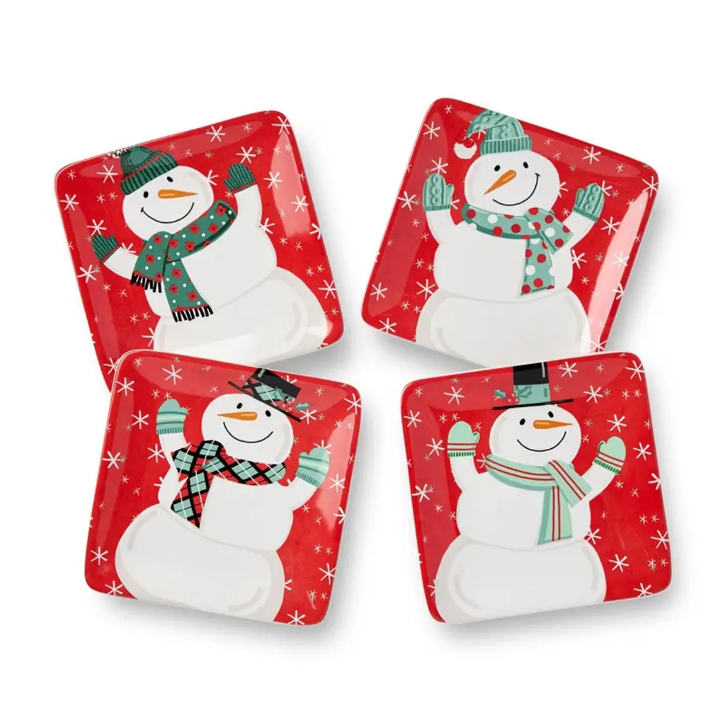 Certified International (Set Of 4) 6" Christmas Whimsy Snowman Canape Plates