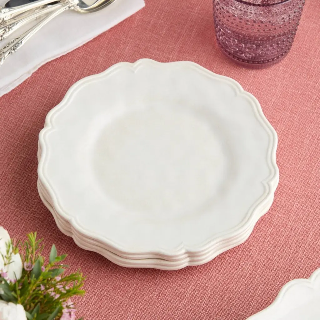 Add a touch of rustic charm to your table with the Isabella Cream Salad Plate, a 9-inch piece that blends timeless design with practical functionality. Featuring a soft cream color, subtle crackle finish, and scalloped edges, this plate exudes a vintage appeal that enhances any dining experience. Perfect for serving fresh salads, appetizers, or desserts, its versatile size and classic design make it a must-have for any table setting. Crafted from durable materials, this plate is ideal for both casual meals and elegant gatherings. Its neutral tone pairs beautifully with other Isabella Cream pieces or contrasting patterns for a personalized look. Dishwasher-safe and easy to maintain, this salad plate is the perfect combination of style and practicality, making every meal special.