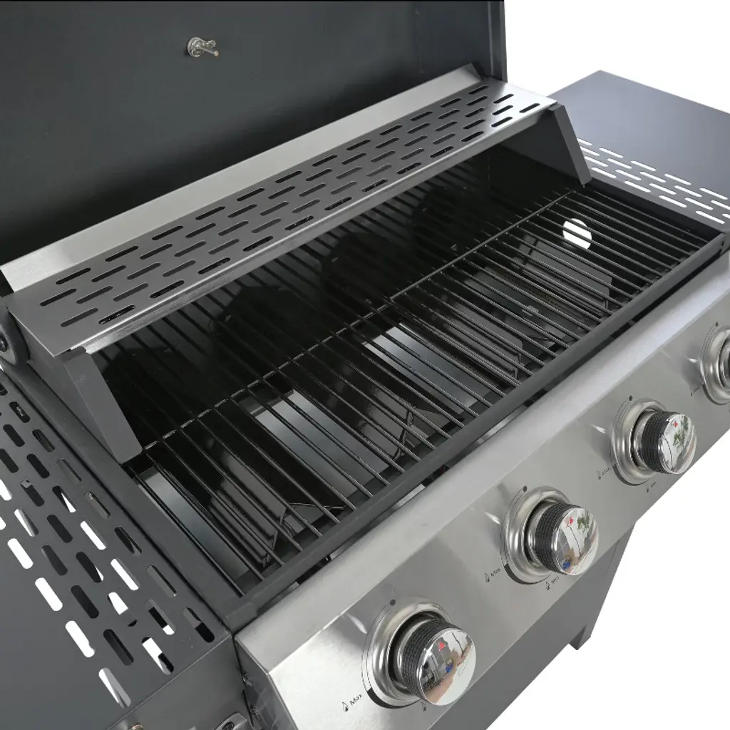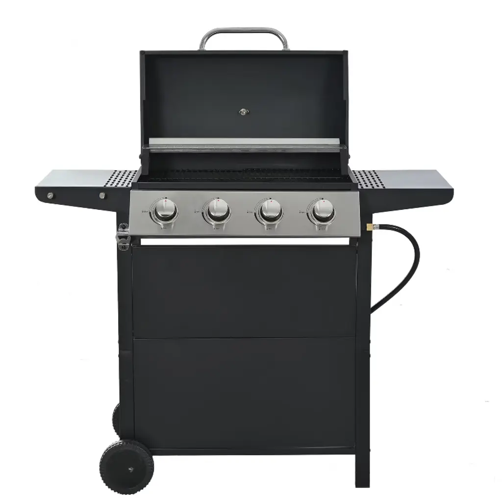 Cesicia Gas Grill, 4 Burner Barbecue Grill, Patio Garden Barbecue Grill With 2 Shelves, Lid, Wheels And Bottle Opener
