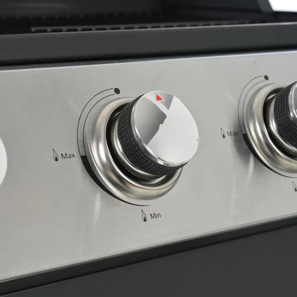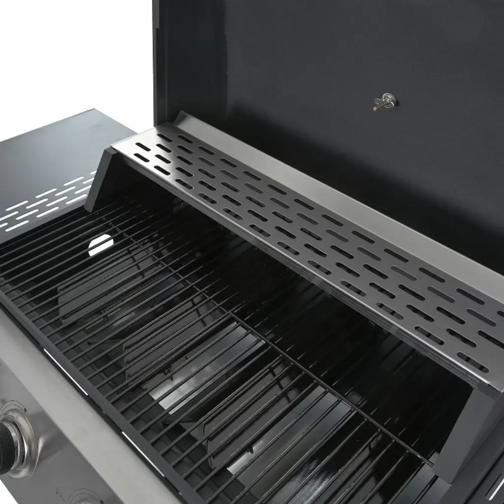 This 4-burner propane gas grill delivers powerful 34,000 BTU-per-hour performance with durable stainless steel construction. Featuring a stainless steel control panel, porcelain-enamel cooking grates, and a built-in lid thermometer, it ensures precise heat control and even cooking across its 23.6" x 13" main grilling area and 23.2" x 4.7" warming zone. With side tables, wheel casters for mobility, and piezoelectric ignition for quick startup, it’s designed for seamless outdoor cooking in backyards, gardens, or balconies across all seasons.