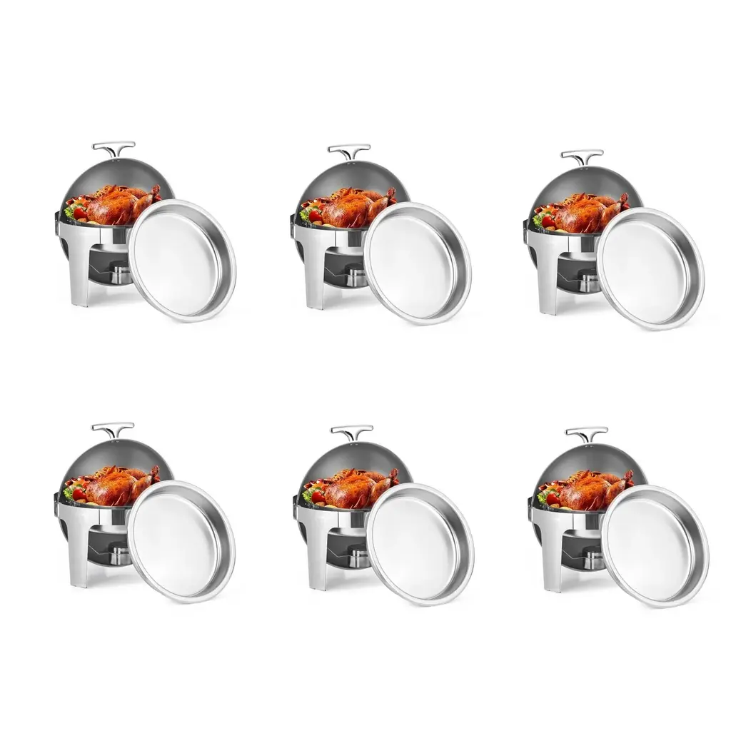 Premium Stainless Steel Material: The entire roll top chafing dish buffet set is made of quality stainless steel which is ideal for food warmer for parties, durable and easy to clean. 6.8 quart can serve 5 person: This roll top chafer comes with two half size food pans,easily accommodates up to 6.8 qt.of piping hot appetizers, entrees, or side dishes. This roll top cover allows for safe, easy access by staff and guests alike. Soft Open & Close without Noise: Our catering food warmers for party with upgraded bearing opens and closes smoothly. You can feel that the buffer while opening and closing the lid of stainless steel chafer. The chafing dish also has handles to ensure that the product can be moved with ease. Warming & Cooling Chafing Dish Buffet Set: Fuel burning keeps food warm and ice cube keeps food fresh. The professional chafing dishes are heavy-duty and durable, suitable as catering food warmers, buffet servers and warmers, restaurants, buffet, hotel, holiday gathering, wedding brunch, picnics. Easy to clean: The roll top chafing dish buffet set is made of stainless steel, which makes it easy to clean. Simply use dishwashing liquid and a soft towel to wipe off any food or residue. The detachable pans can also be easily cleaned separately. Additionally, the food pan, water pan, and cover are dishwasher safe, making cleanup a breeze.