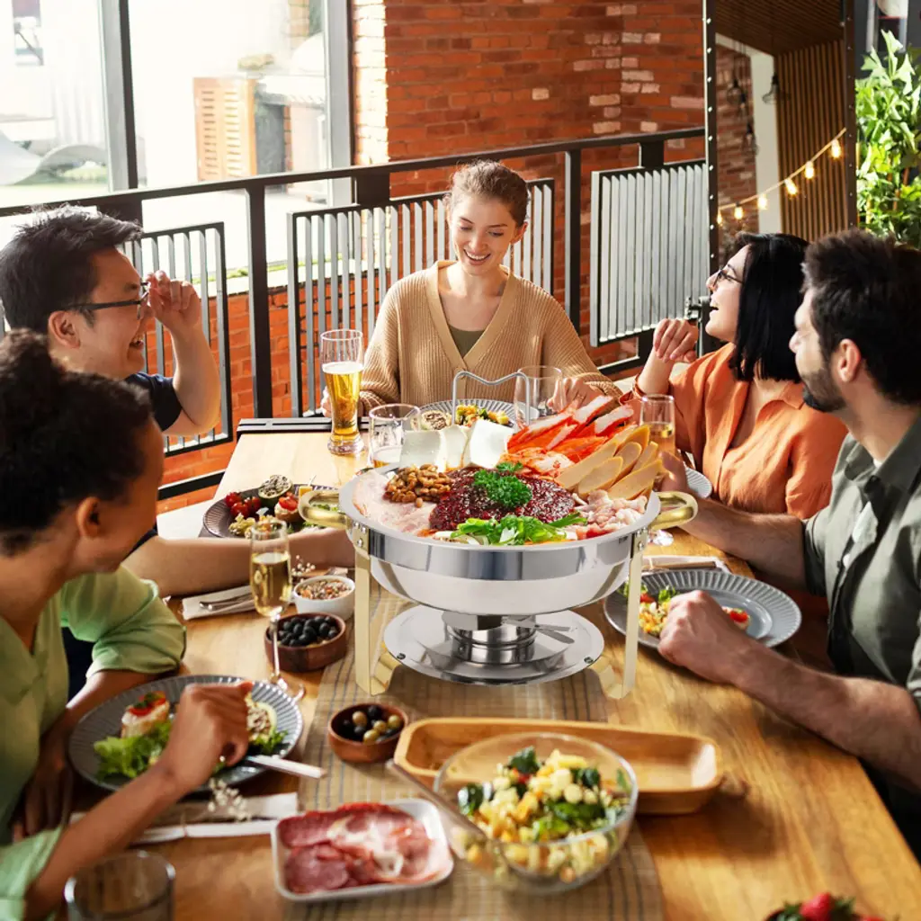 Chafing Dishes, 5Qt Buffet Servers, Round Catering Food Warmers Stainless Steel Chafing Dish Buffet Set With Glass Lid & Lid Holder, 4 Packs, Gold