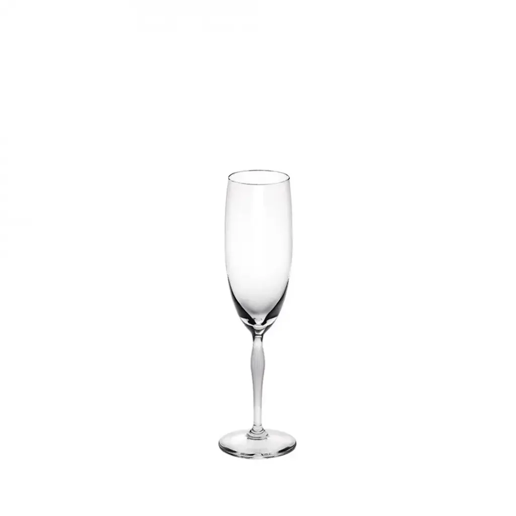 Champagne glass Passe-partout is a glass flute.This glass for sparkling wines and champagne is made of high-quality potassium glass. This champagne glass is part of the Passe-partout glassware collection by Vincent van Duysen and is a timeless design in its transparent version.With the porcelain tableware, countless visual effects can be created by stacking or by playing with the contrasting white and black exterior colours. The glasses are vaguely reminiscent of medieval chalices, and the carafes of different sizes serve all purposes. The cutlery and wooden accessories are also no-nonsense, a tad nostalgic, while at the same time very contemporary.