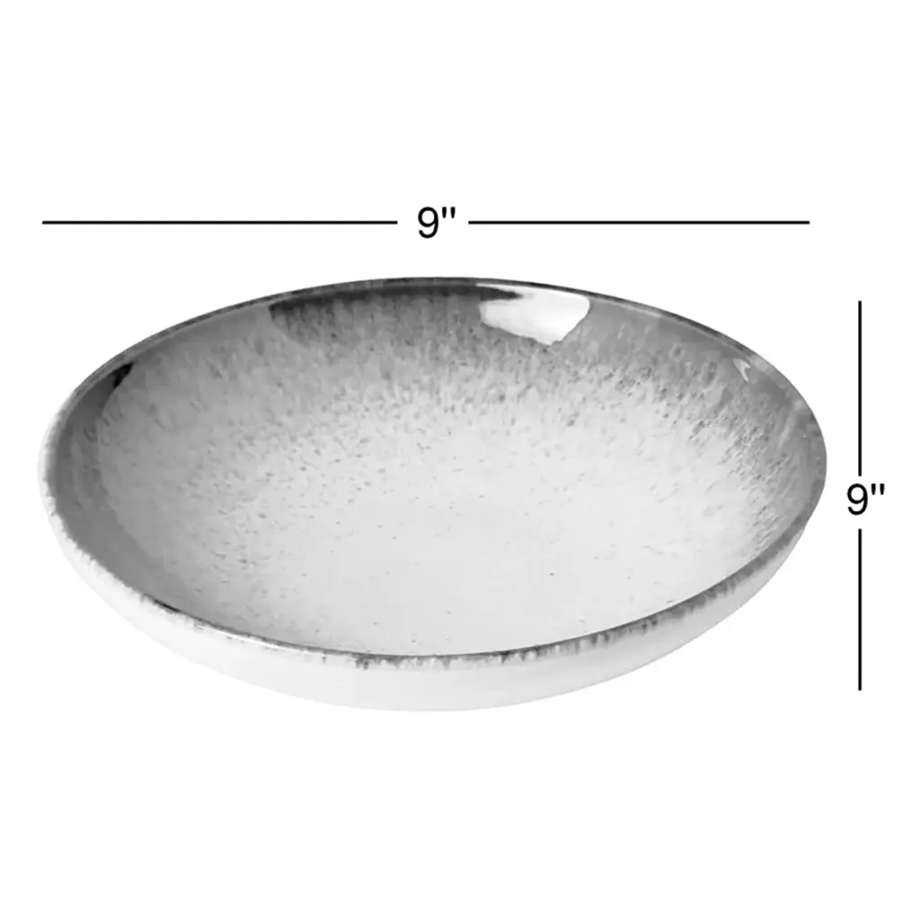 Champlain adds a dramatic look to your home with the beauty of reactive glazes with stunning blues and browns. The pasta dish may be used in place of a salad plate or along with a traditional place setting. 9" diameter and about 2" deep. Microwave and dishwasher safe ceramic stoneware. Made in Portugal.