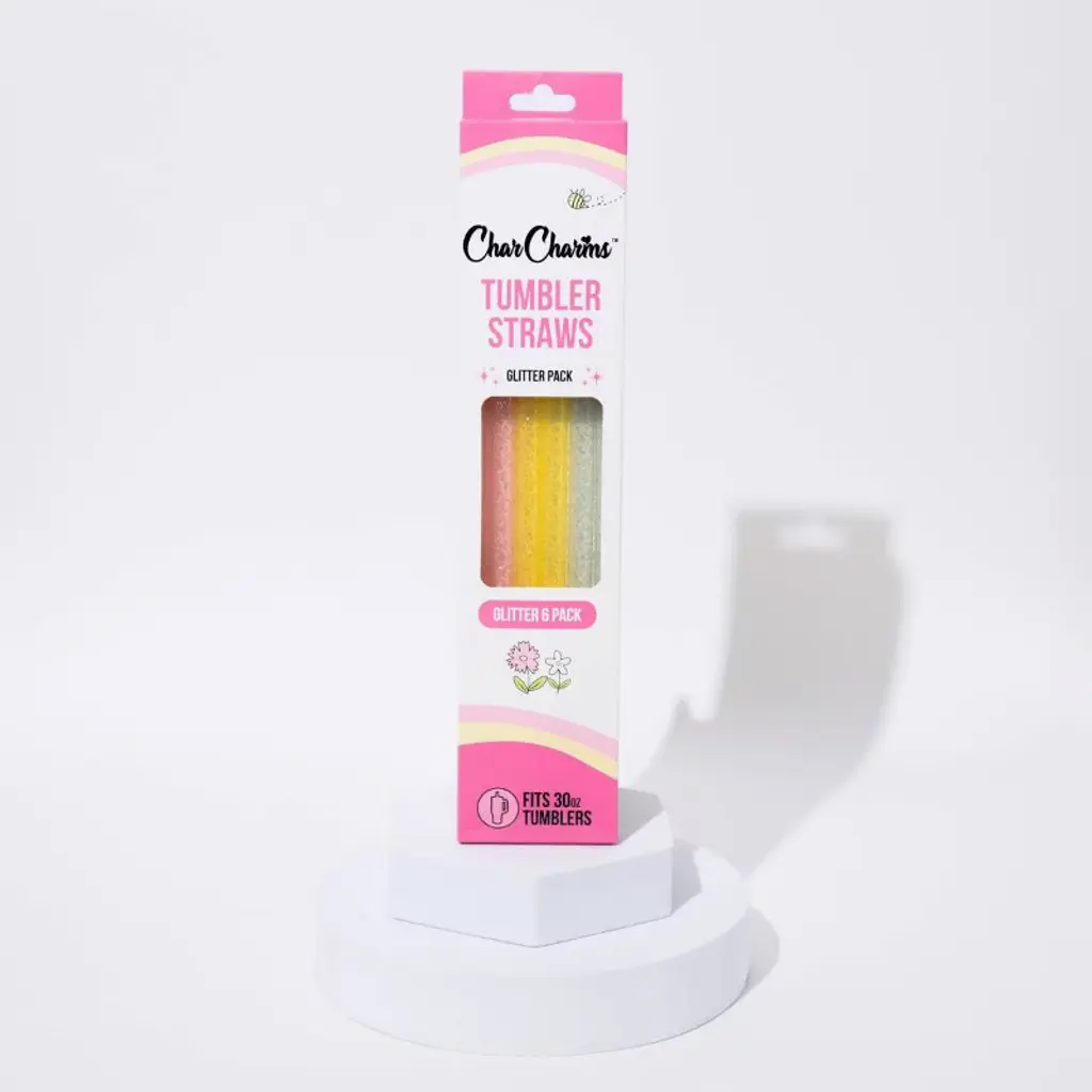 Charcharms 6Pk 30oz Water Bottle Straws Glitter