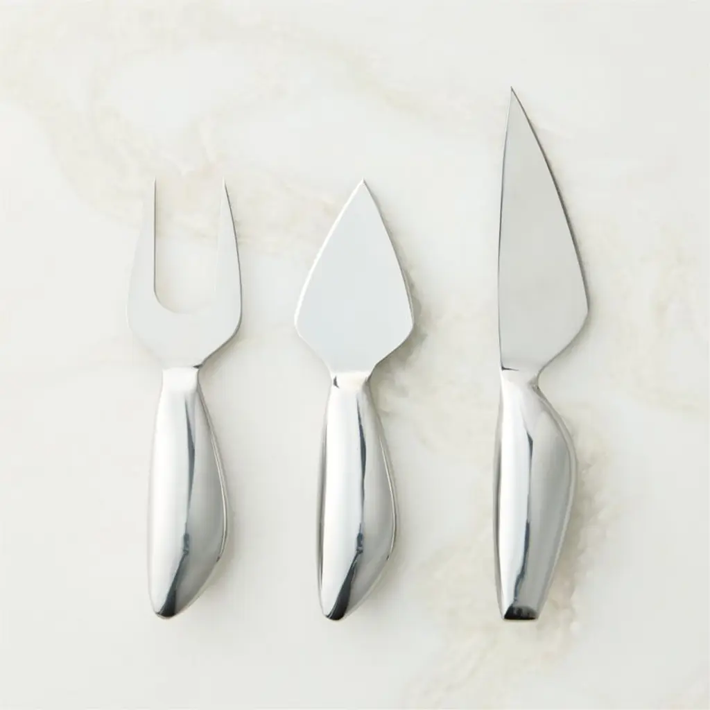 Our charcuterie serving set is the perfect gift for those who love to host. Carved from hand-stained ash wood certified sustainable by the Forest Stewardship Council (FSC), the serving board is paired with three sleek cheese knives. Naturally one of a kind, the warm walnut-stained wood contrasts beautifully with satin-finished stainless steel. CB2 exclusive.