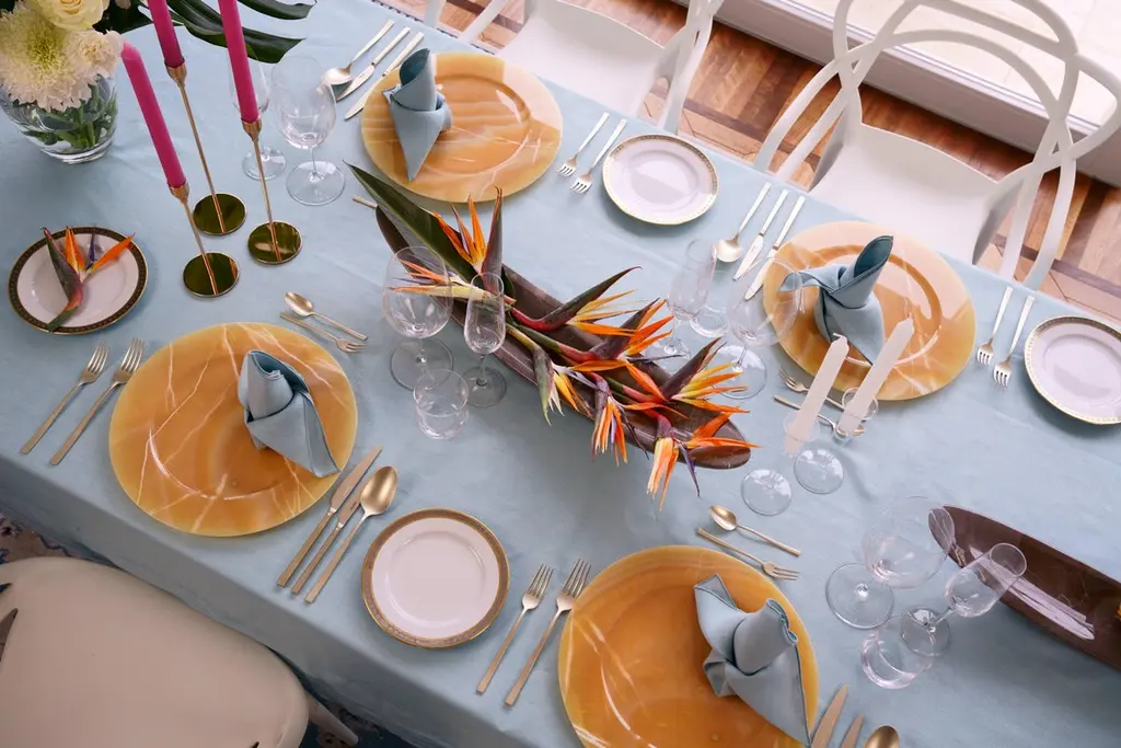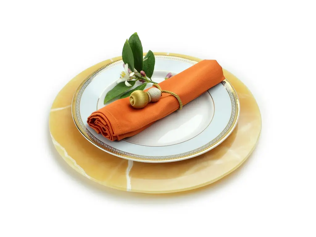 Charger Plate Platters Serveware Orange Onyx Marble Handmade Collectible Design