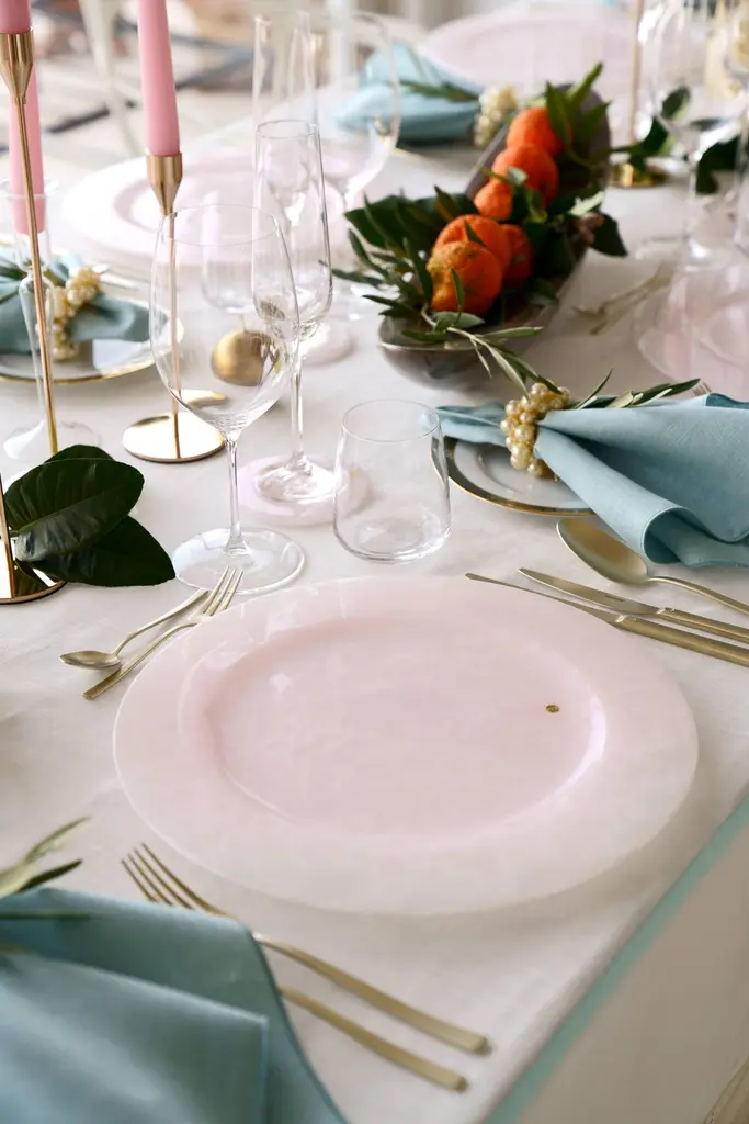 Charger Plate Platters Serveware Pink Onyx Marble Handmade Collectible Design