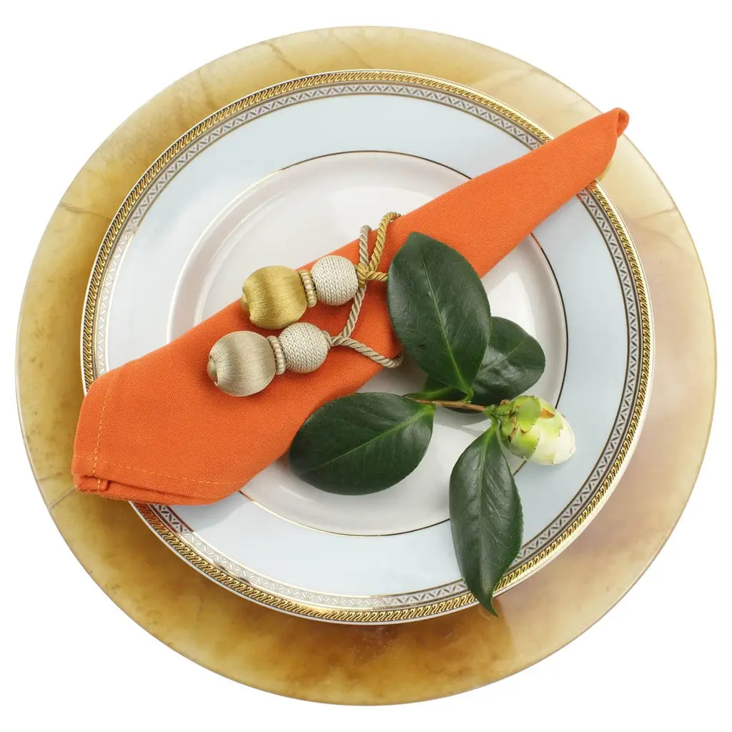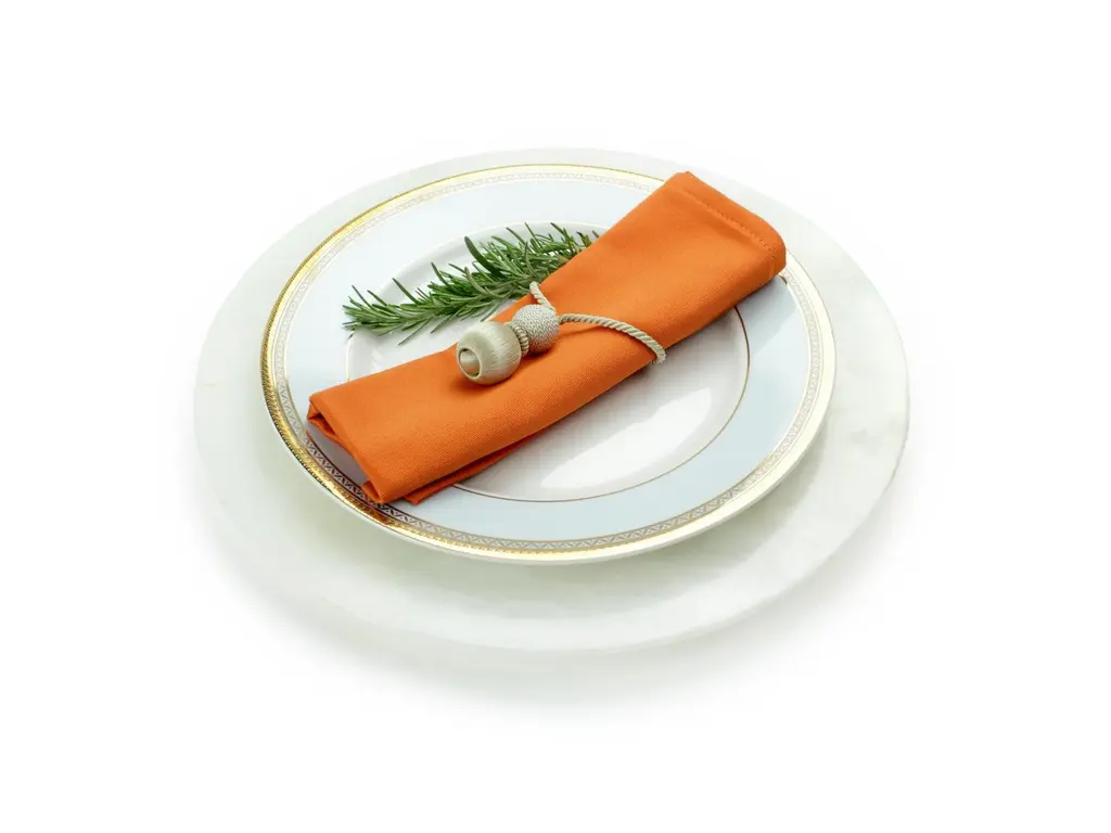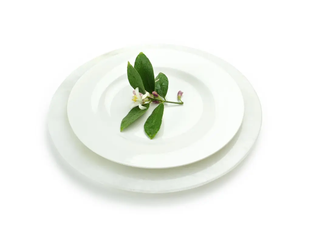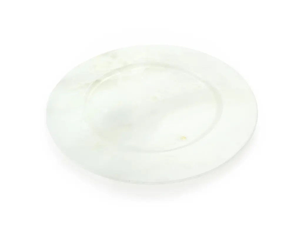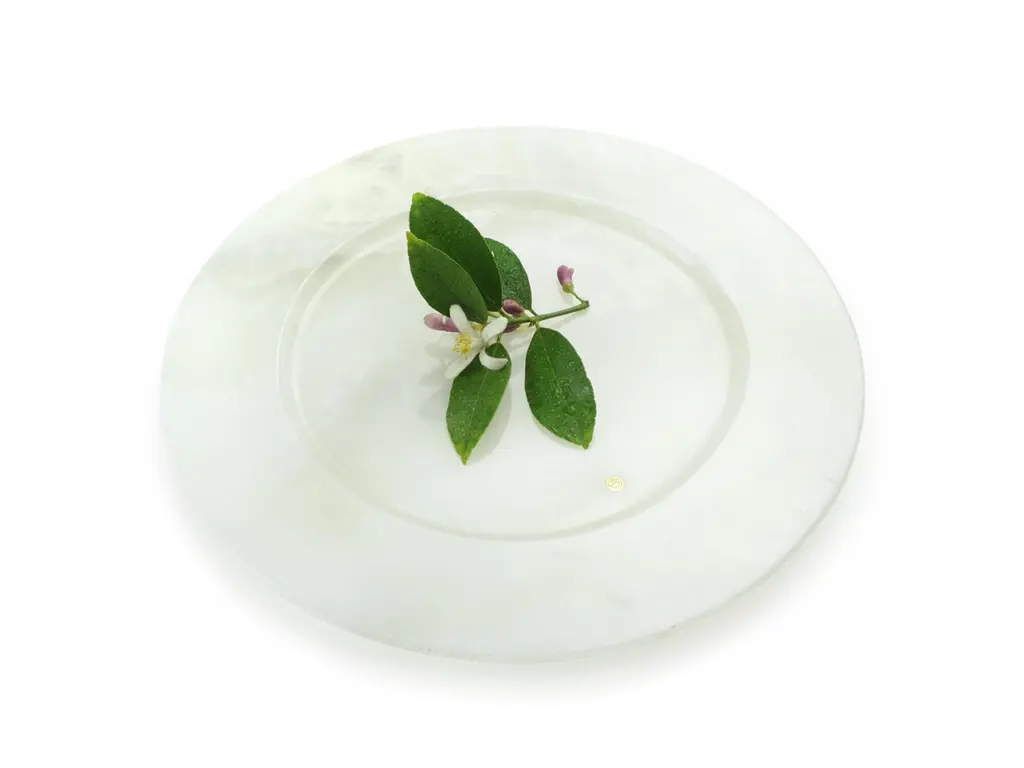 Set of 6 hand carved charger plates in white onyx. Multiple use as charger plates, plates, platters and placers. The polished finishing underlines the transparency of the onyx making this a very precious object. Dimensions: D 33, H 1.9 cm. Available in different marbles, onyx and quartzite. 100% Hand made in Italy. Onyx is a natural material, every piece is unique as each onyx block is different in veins and color shades. All of our creations are handmade by Italian artisans and can slightly vary in shape and size. This is to be considered as a guarantee of a handmade object. All Pieruga objects are made of precious and natural marbles and onyx. Marble is sensitive to acid-based liquids, especially a prolonged contact with substances such as wine, lemon, vinegar, fruit juices, cola and alcohol can stain the surface.Cleaning should be carried out with a soft sponge, water and neutral detergent. Do not use metallic or abrasive sponges, do not wash in the dishwasher, do not use in the microwave. The color of the marble after washing can undergo variations due to the humidity trapped in the surface’s micro-pores. Once fully dried it will regain its original color. The brass inlays tend to oxidize over time, to make them return to shine again use a soft cotton pad soaked in a solution of water and traditional Marseille soap, gently rub over the brass inserts and rinse the surface thoroughly. We are against the use of chemical products, all Pieruga objects are processed and polished through long manual processes without the use of polishing liquids.Pieruga proudly creates elegant accessories and complements in marble through artisanal processes, bringing into dialogue ancient techniques of sculpture with advanced technologies. 100% handmade in Italy.Our Mission is a clear Signal of opposition to the enormous waste that occurs in the extraction and processing of large blocks of marble, tons of material are discarded and thrown, in disfigurement to the generosity of our mountains.Rediscovering the ancient art of manual sculpture we give new life to even the smallest fragment of marble, bringing to light its millenary beauty that is lost in more than 2000 years of architecture and sculpture.Pieruga marble is a new brand by Barberini & Gunnell.The Atelier Barberini & Gunnell was founded by the architects and designers Francesco Barberini and Nina A. Gunnell The artworks by Barberini & Gunnell are regularly shown at international art fairs, such as PAD London, PAD Genève, PAD Monaco, Salon Art and Design New York, Art Miami.
