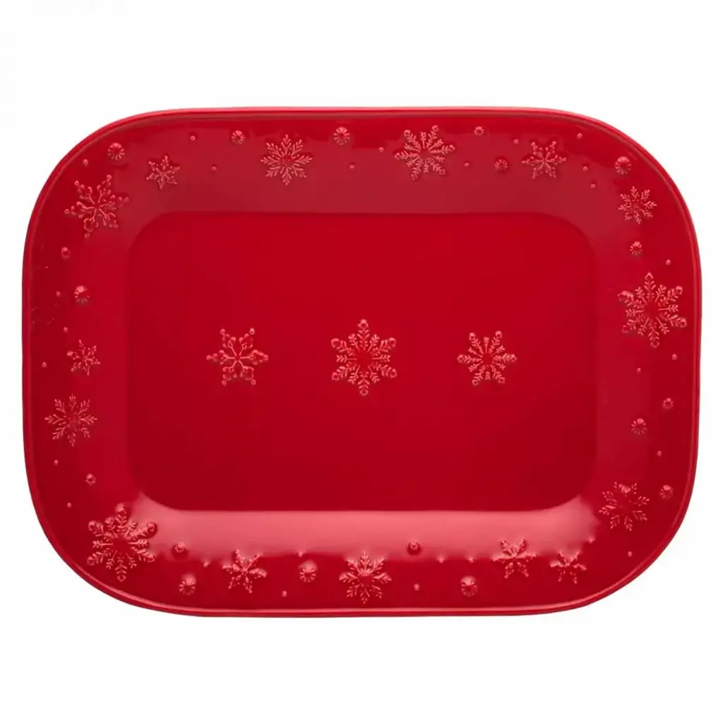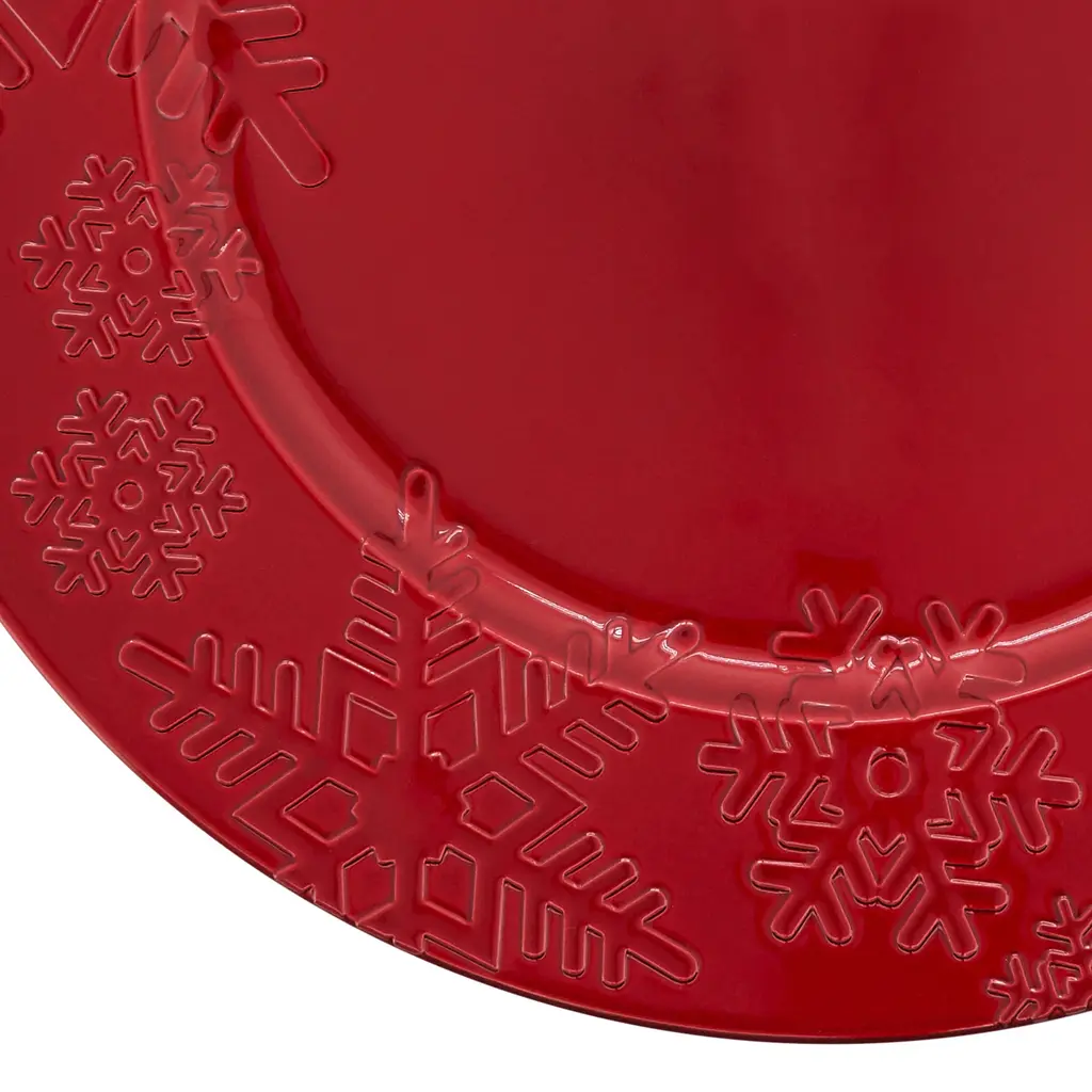 Charger Plates With Snowflake Design (Set Of 4) - 4 Piece - Red