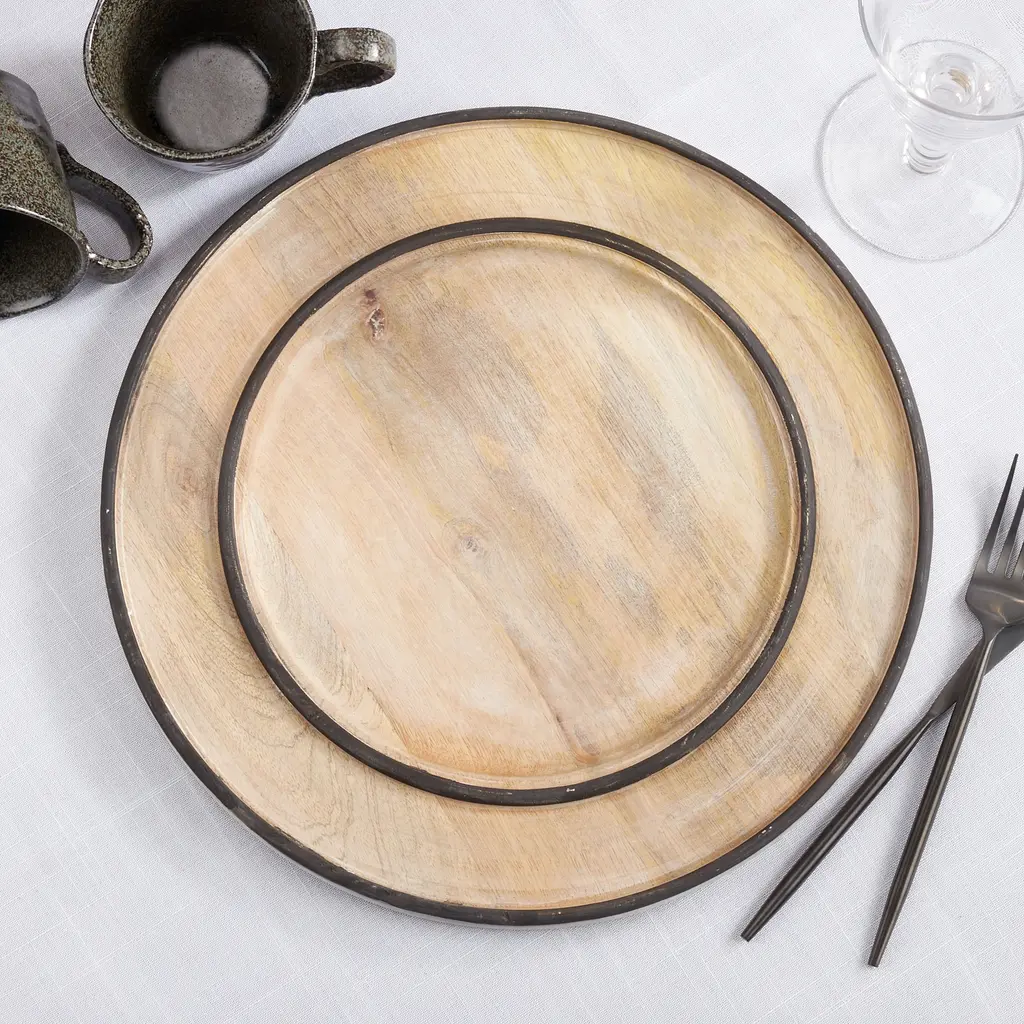 This charming set of Wood Design Charger Plates adds a lovely accent to your table decor. The organic, casual style of natural wood goes compliments any dinnerware and is easy to dress up, or down, depending on the occasion. It's made with 100% mango wood for high quality and long-lasting use.Features: