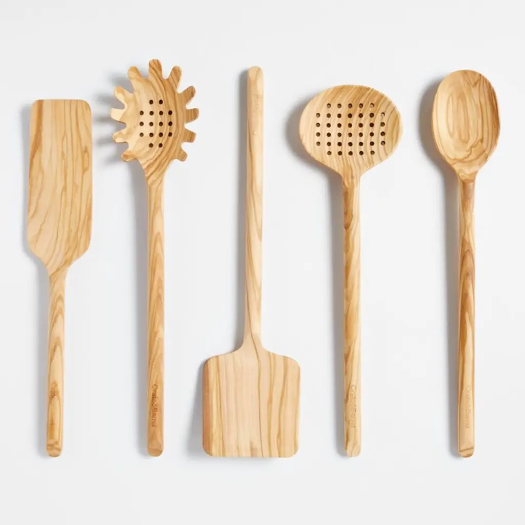 Elevate your culinary artistry with the Cheer Collection 9-Piece Deluxe Wooden Cooking Utensils Set. Crafted from 100% natural wood, this premium set not only brings the timeless beauty of nature into your kitchen but also offers unmatched durability and sophistication. Each utensil in this comprehensive collection, including a spatula, slotted spatula, fry spatula, salad spoon, strainer spoon, salad fork, and additional spatula, is complemented by a stylish utensil holder and spoon rest, ensuring that you have the perfect tool for every cooking task. Designed with both elegance and functionality in mind, our utensils are heat-resistant and suitable for use with non-stick cookware, ensuring that your valuable pots and pans remain scratch-free. The smooth, polished finish of each piece showcases impeccable craftsmanship, making this set not only a practical choice for everyday cooking but also a thoughtful gift for those who appreciate the finer things in life. The set's ergonomic design features a thick, comfortable grip, making cooking and serving effortless. Each piece is easy to clean by hand and designed for convenient storage, with hanging holes and an elegant utensil holder that keeps your kitchen organized and stylish. Whether you're a seasoned chef or a culinary novice, the Cheer Collection 9-Piece Deluxe Wooden Cooking Utensils Set is your perfect partner in the kitchen, where functionality meets natural elegance in every dish you create. Dimensions: SALAD SPOON: 10.2” FRY SPATULA: 12.5” MIXING SPOON: 9.5” SLOTTED SPATULA: 11.5” STRAINER SPOON: 11.3” SALAD FORK: 10.2” SPATULA: 13.2” UTENSIL HOLDER: Length 5.9” x Width 3.5” SPOON REST: Length 4.7” x Width 4.5”