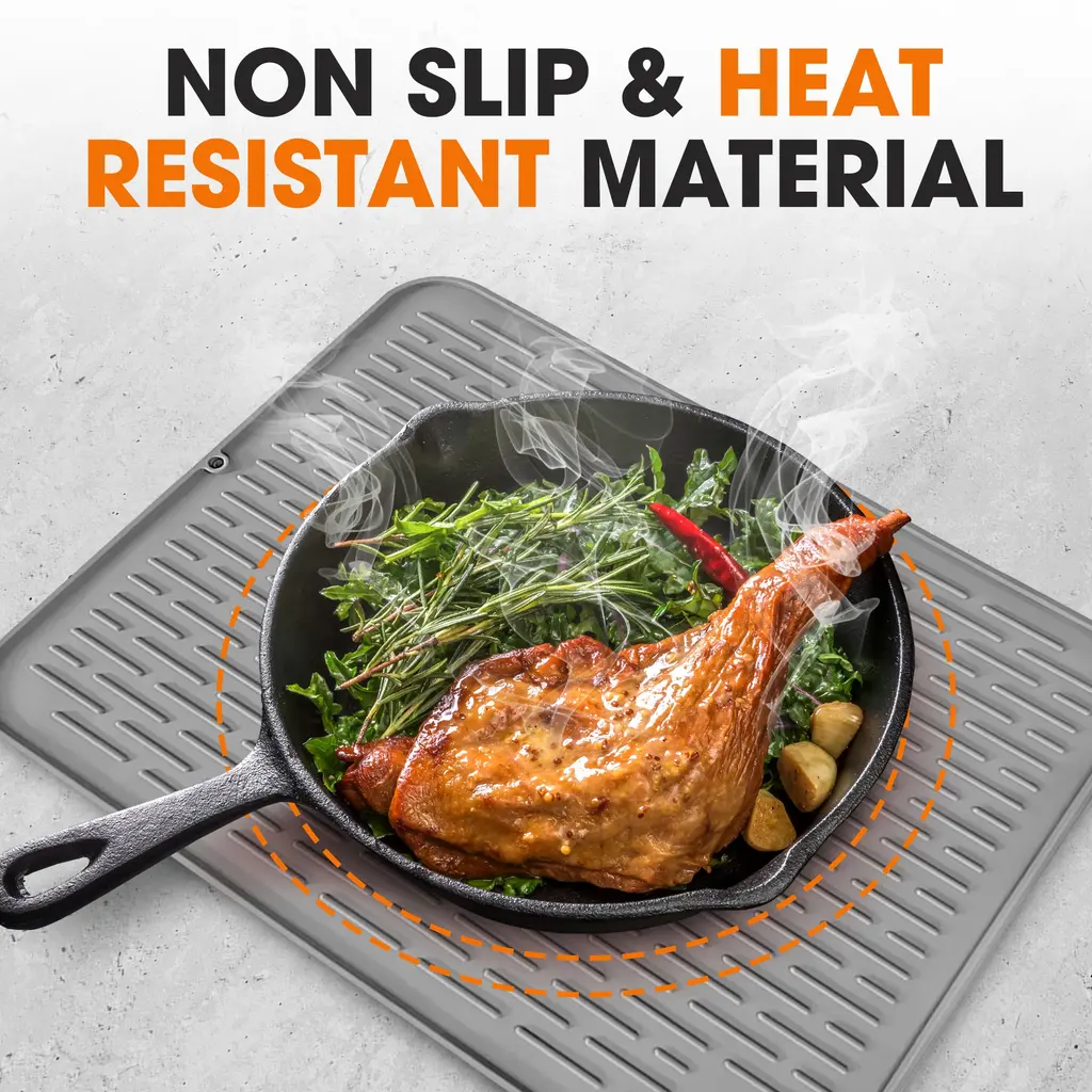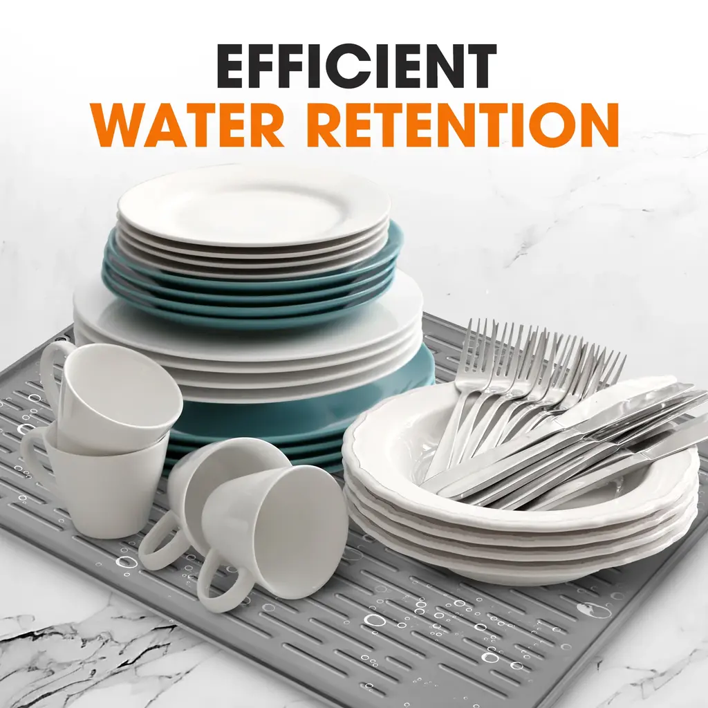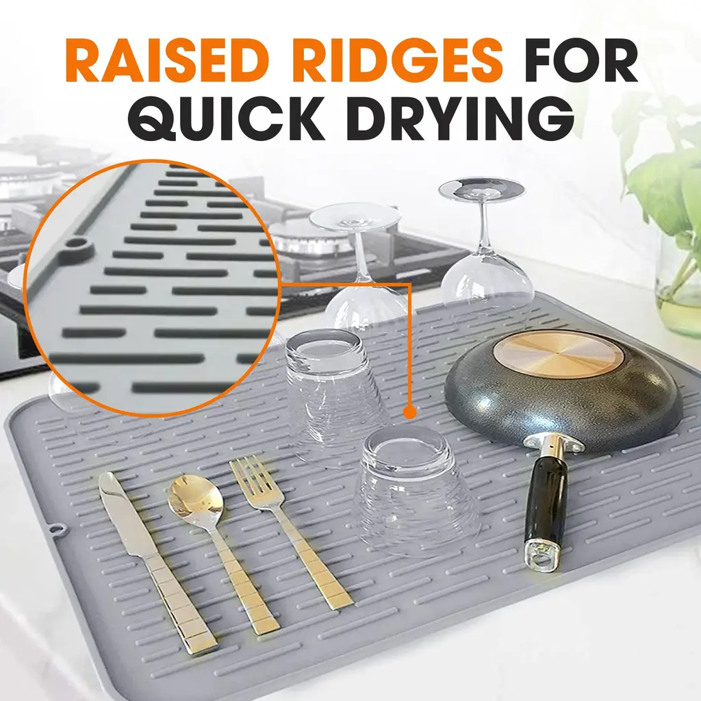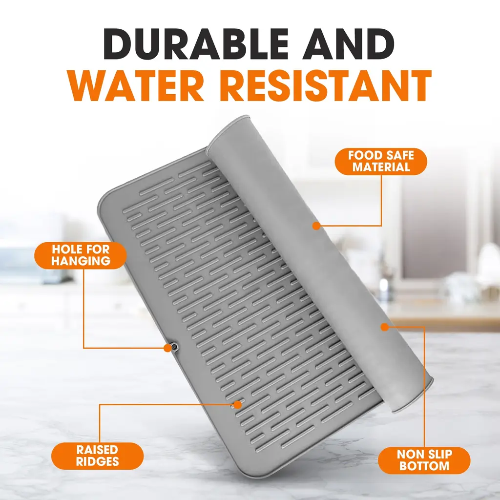 Keep Your Kitchen Counters Dry, Clean & Tidy With the Cheer Collection Silicone Dish Drying Mat! Our silicone mats for kitchen counter are waterproof, dishwasher safe, heat resistant, safe to use, easy to clean, and provide the perfect fit for any home kitchen along with offering ample storage space to make your time in the kitchen easier and simpler.Thanks to the raised edges, the drying mats for countertop help your dishes and cups dry faster while the elevated sides help prevent water from getting on your counter. Features You’ll Love: